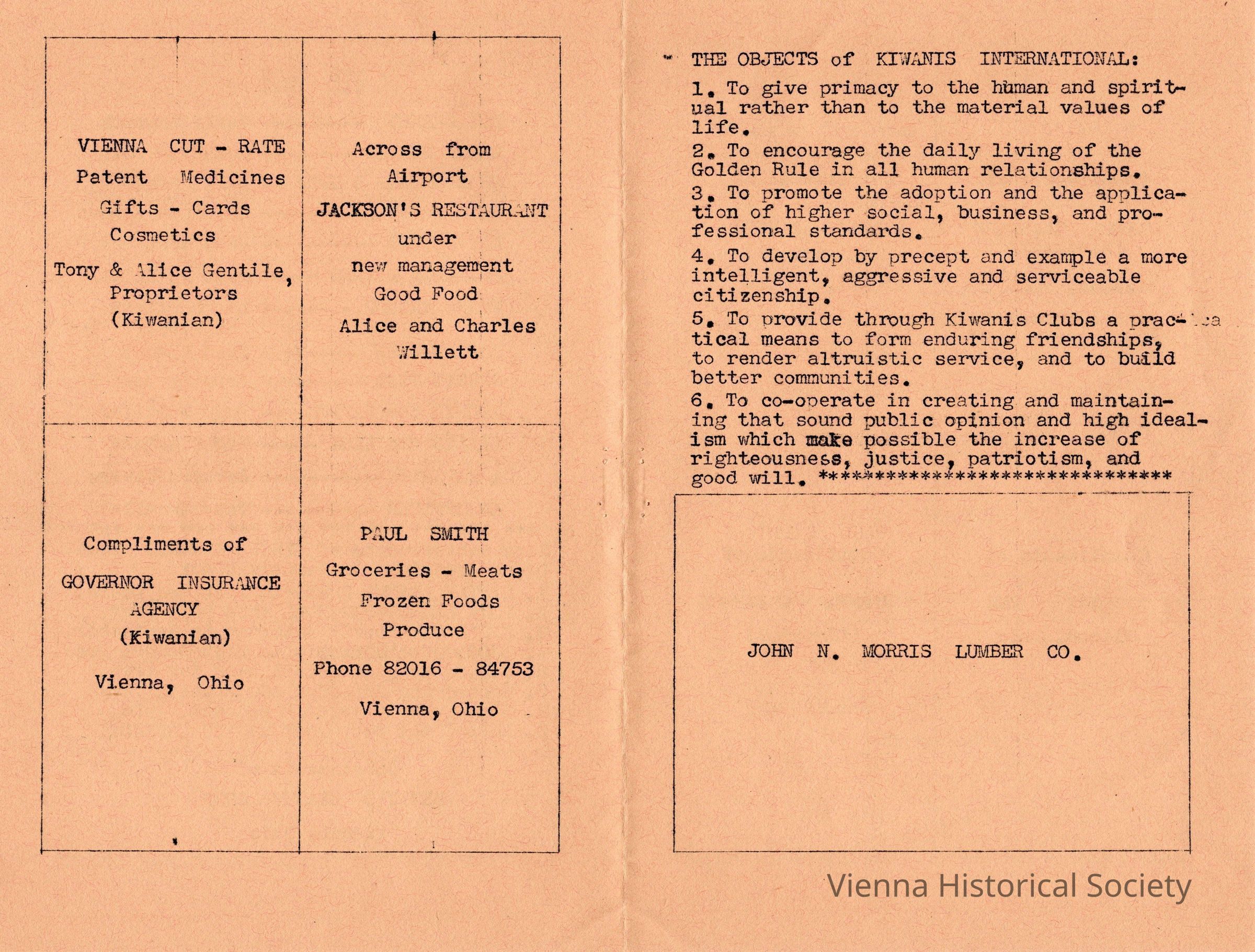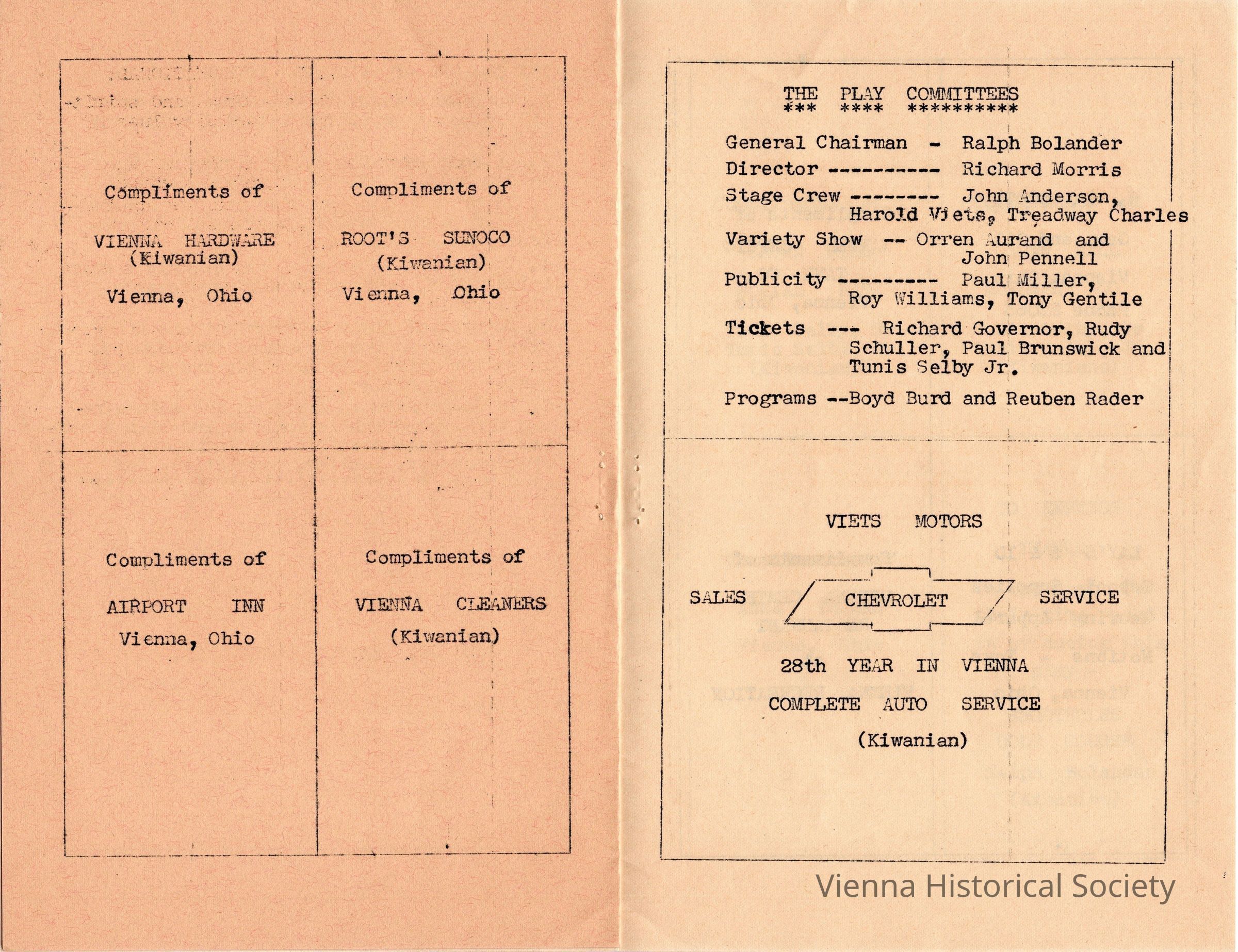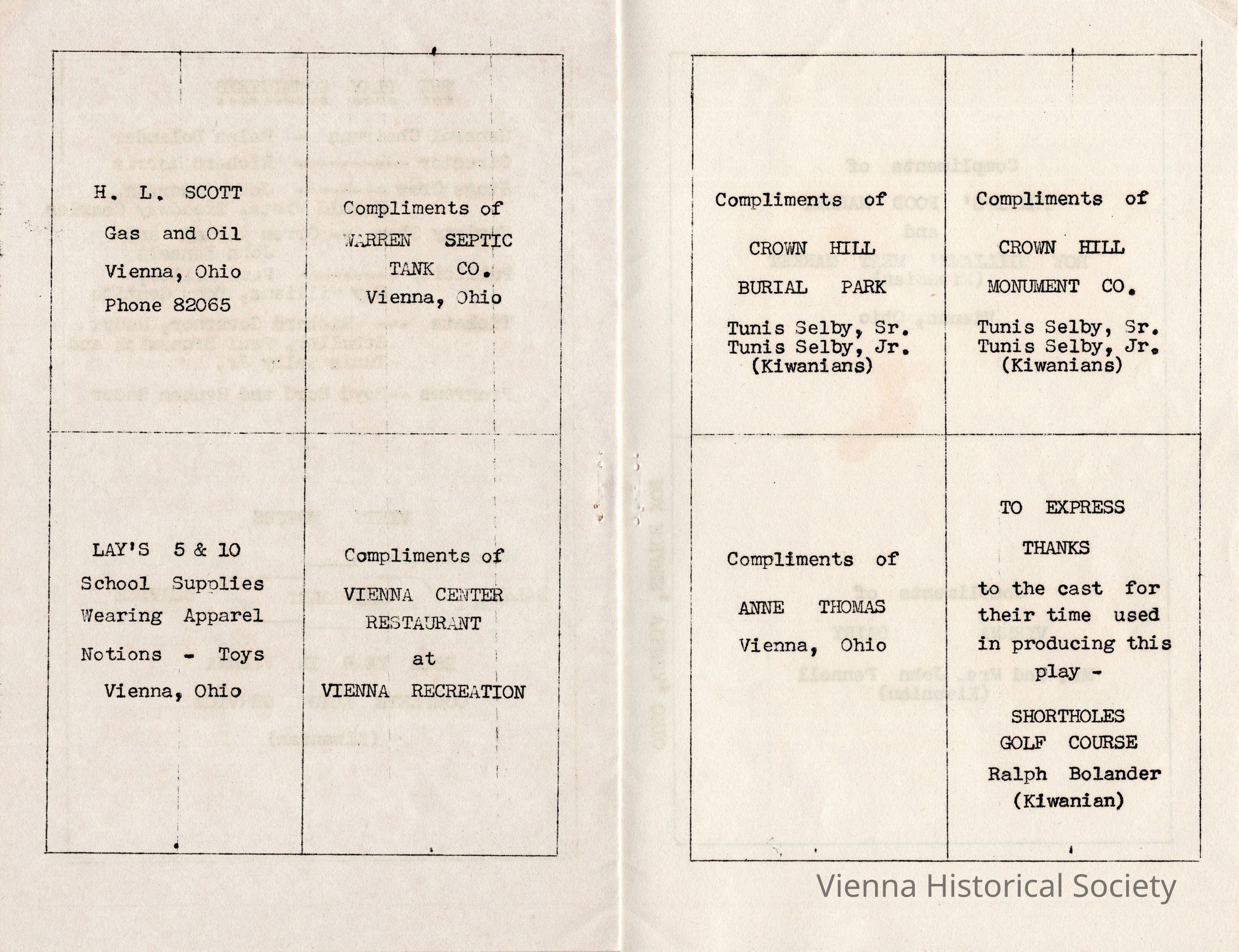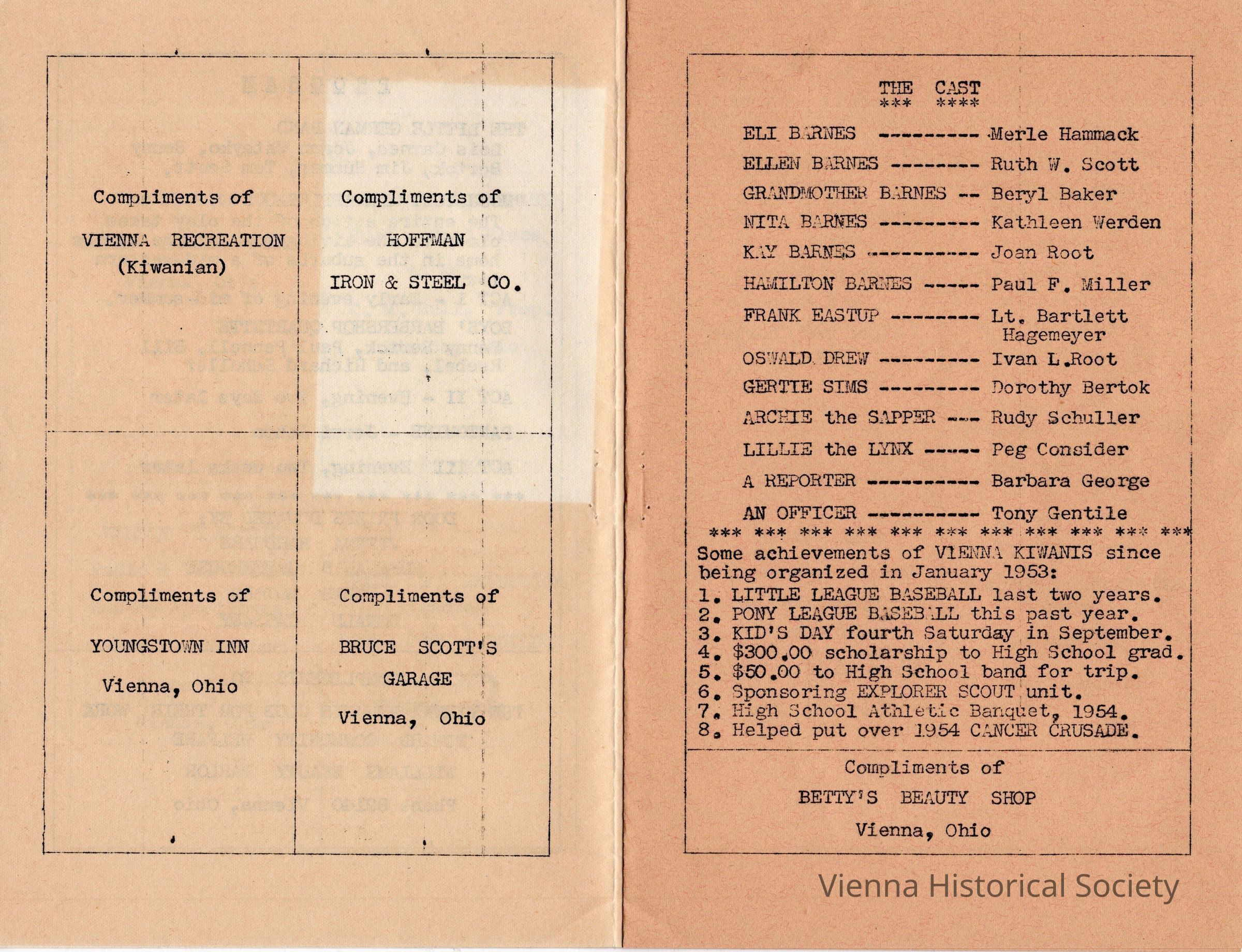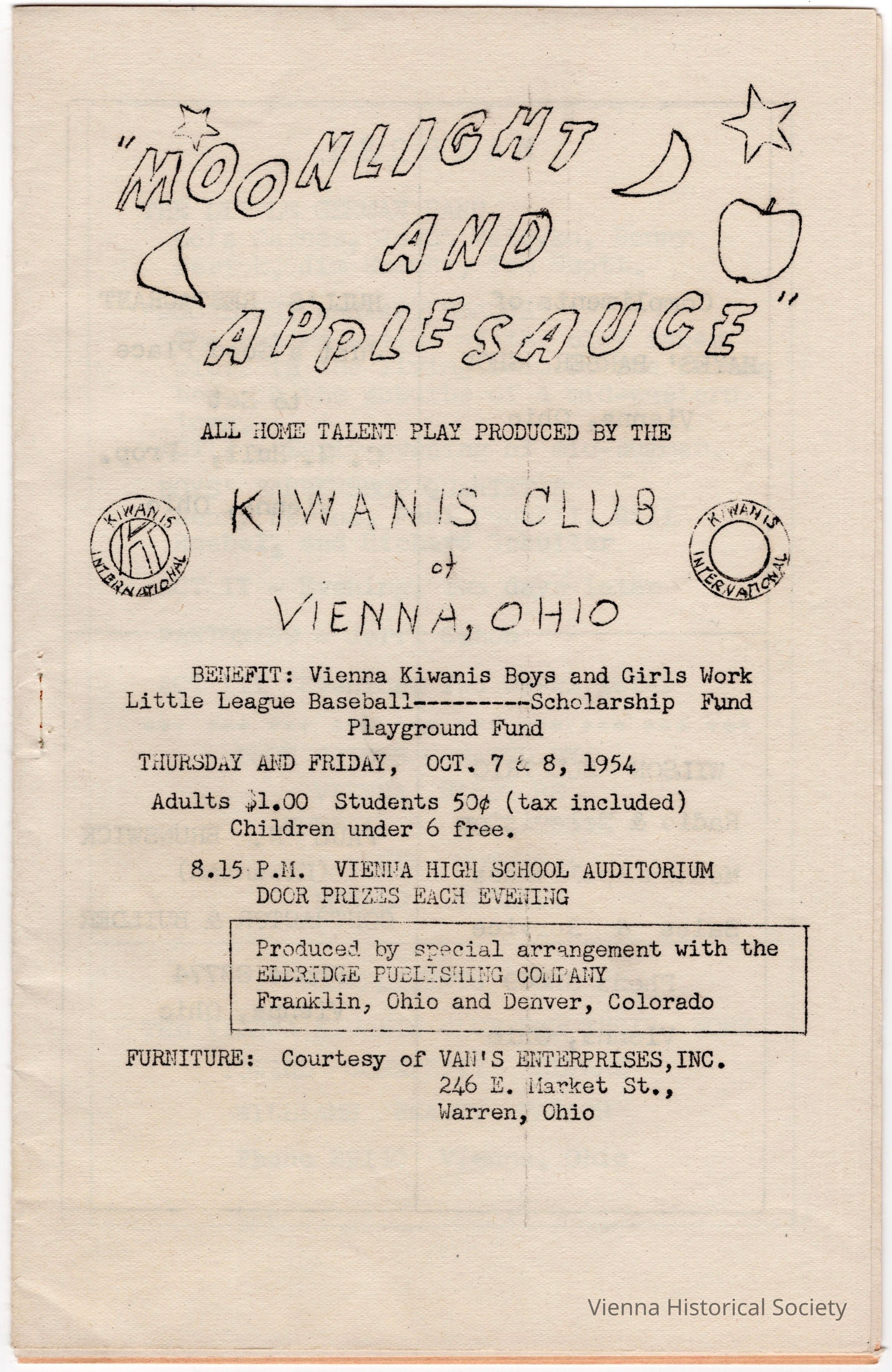 Vienna Kiwanis Club Play Program, Moonlight and Applesauce, October 7th & 8th, 1954Collection