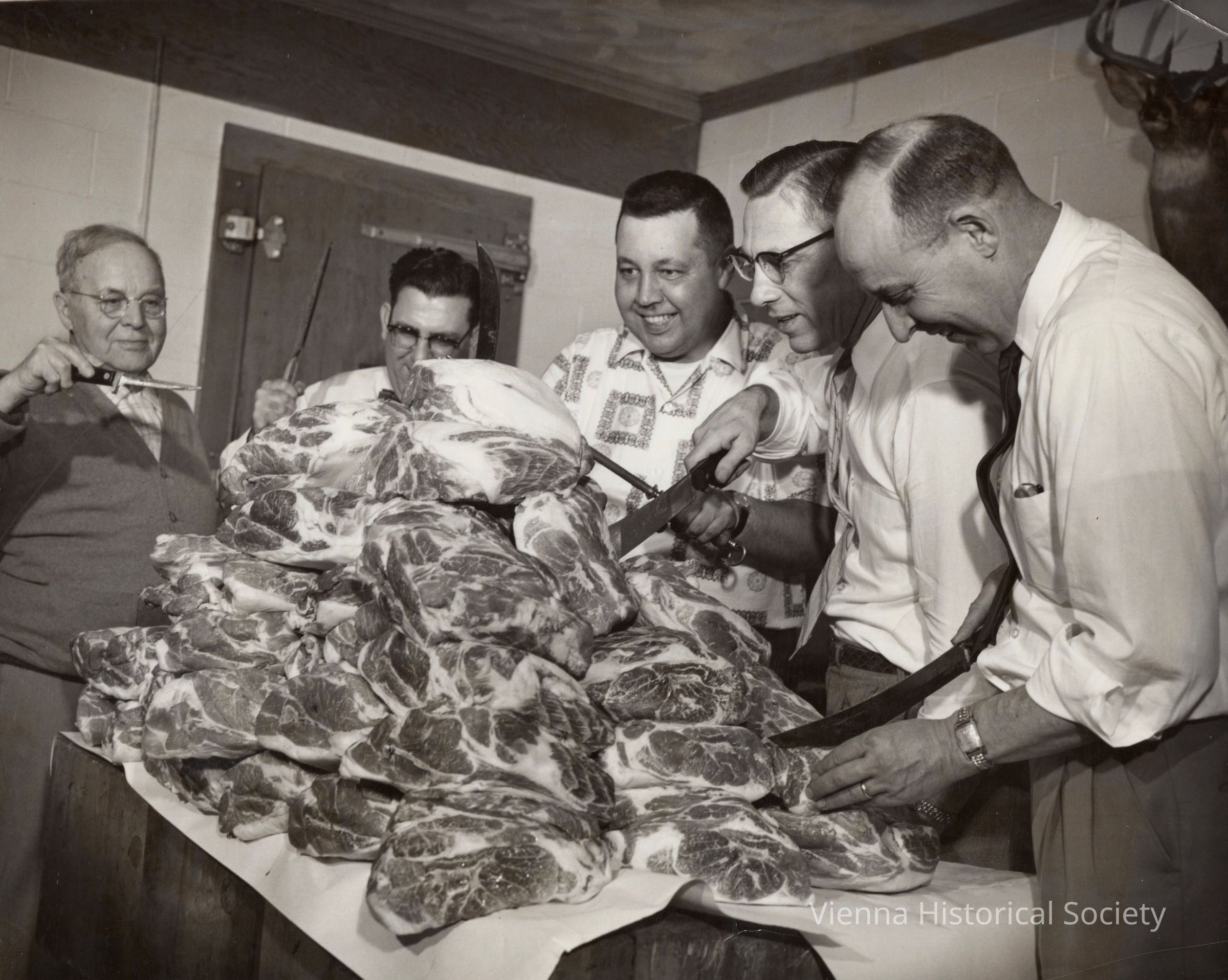 Making Sausage at Paul Smith's Market for the Kiwanis Pancake and Sausage Fundraiser photo, 1950sCollection