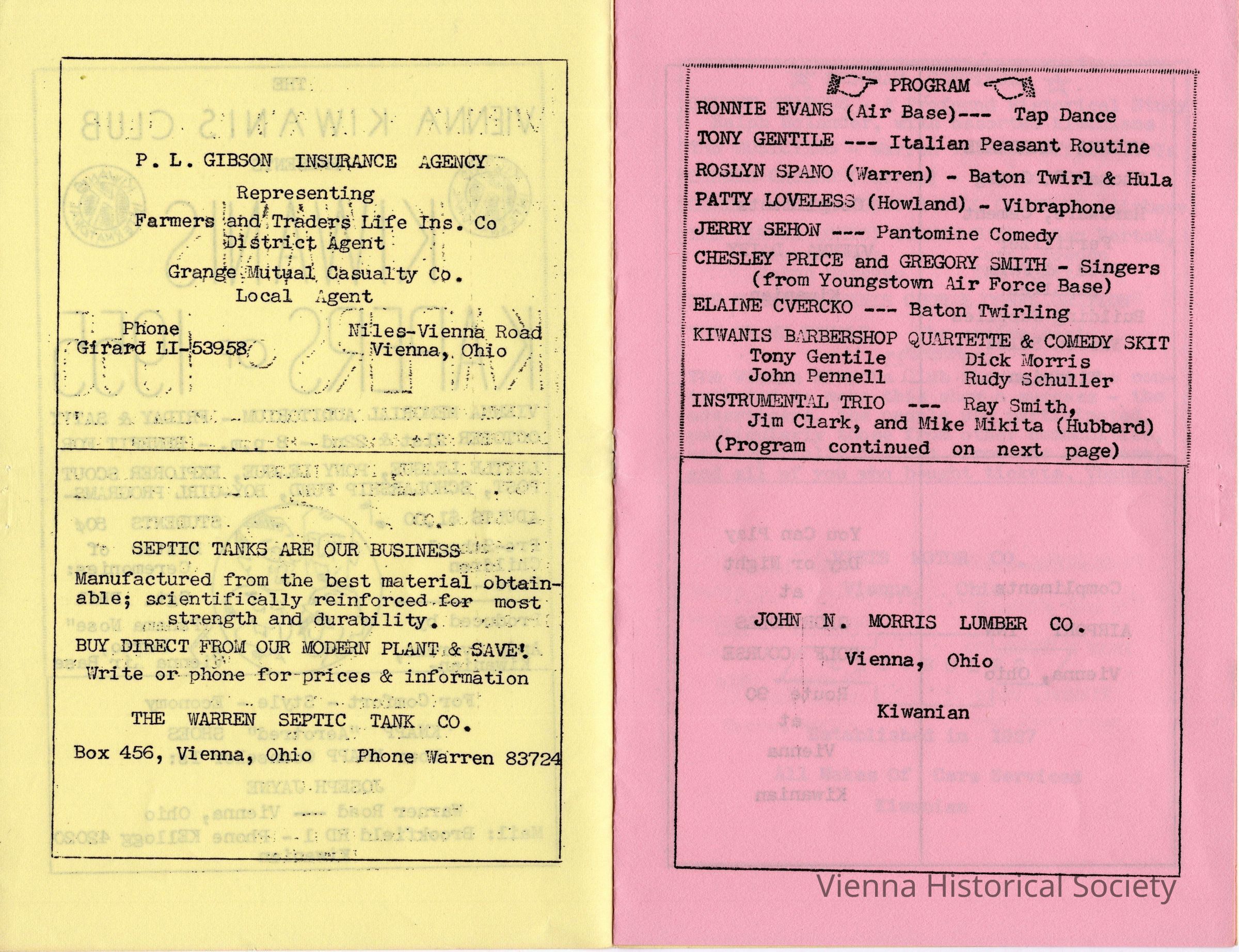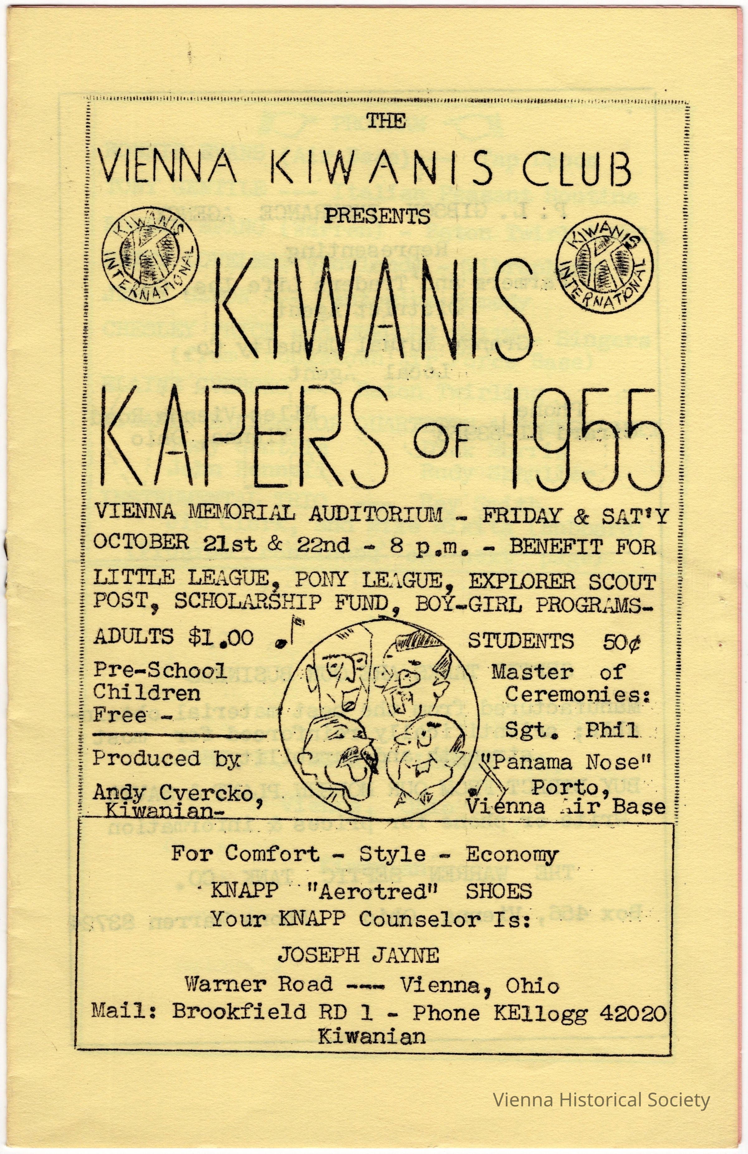 Vienna Kiwanis Play, Kiwanis Kapers of 1955 Benefit Program, October 21 & 22, 1955Collection