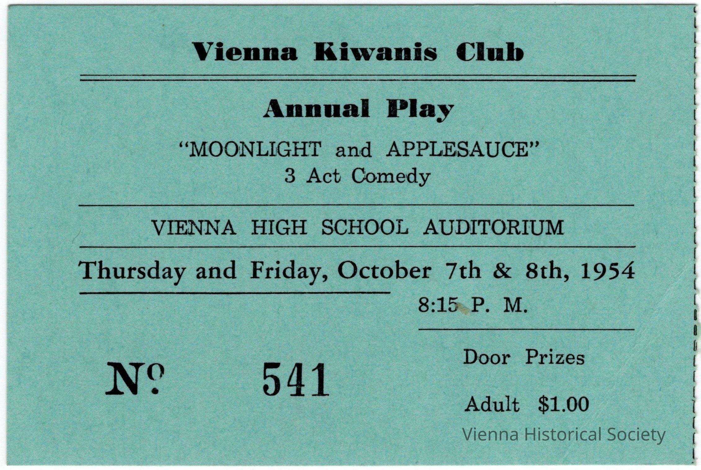 Vienna Kiwanis Club Play Ticket, Moonlight and Applesauce, October 7th & 8th, 1954Collection