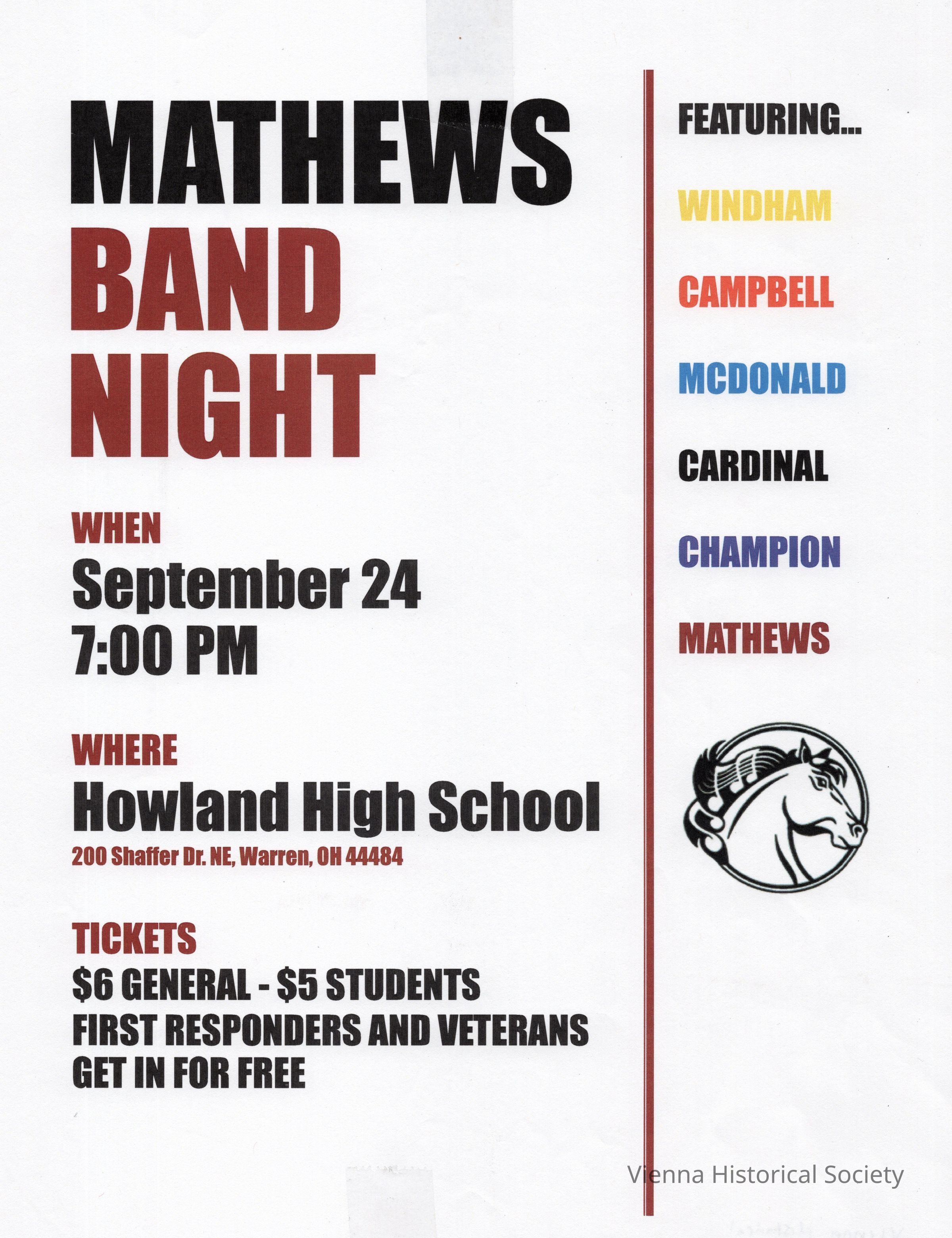 Mathews High School Marching Band Night Flyer - September 24, 2022Collection