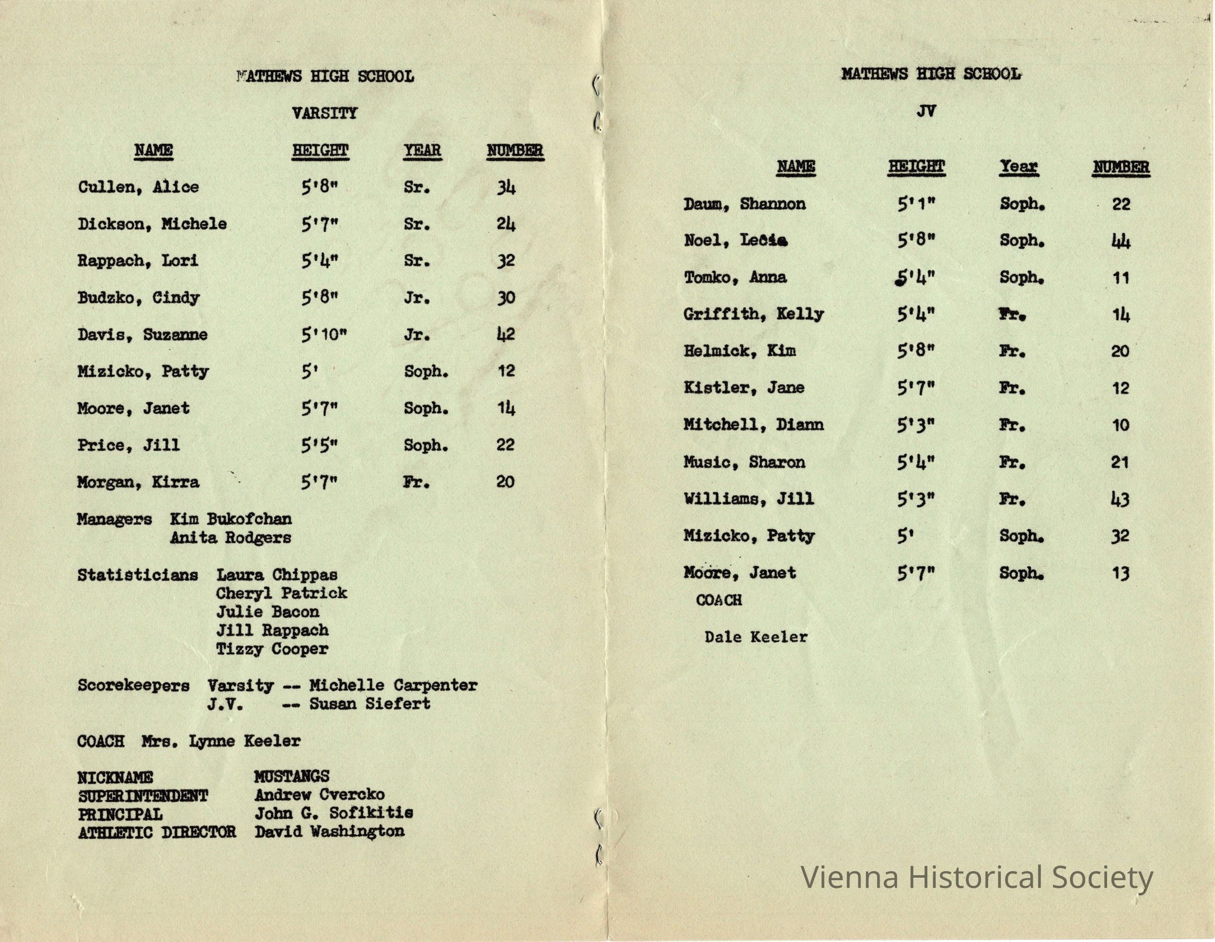 Mathews High School "Mustangettes" Girls Basketball Program, 1979-1980Collection