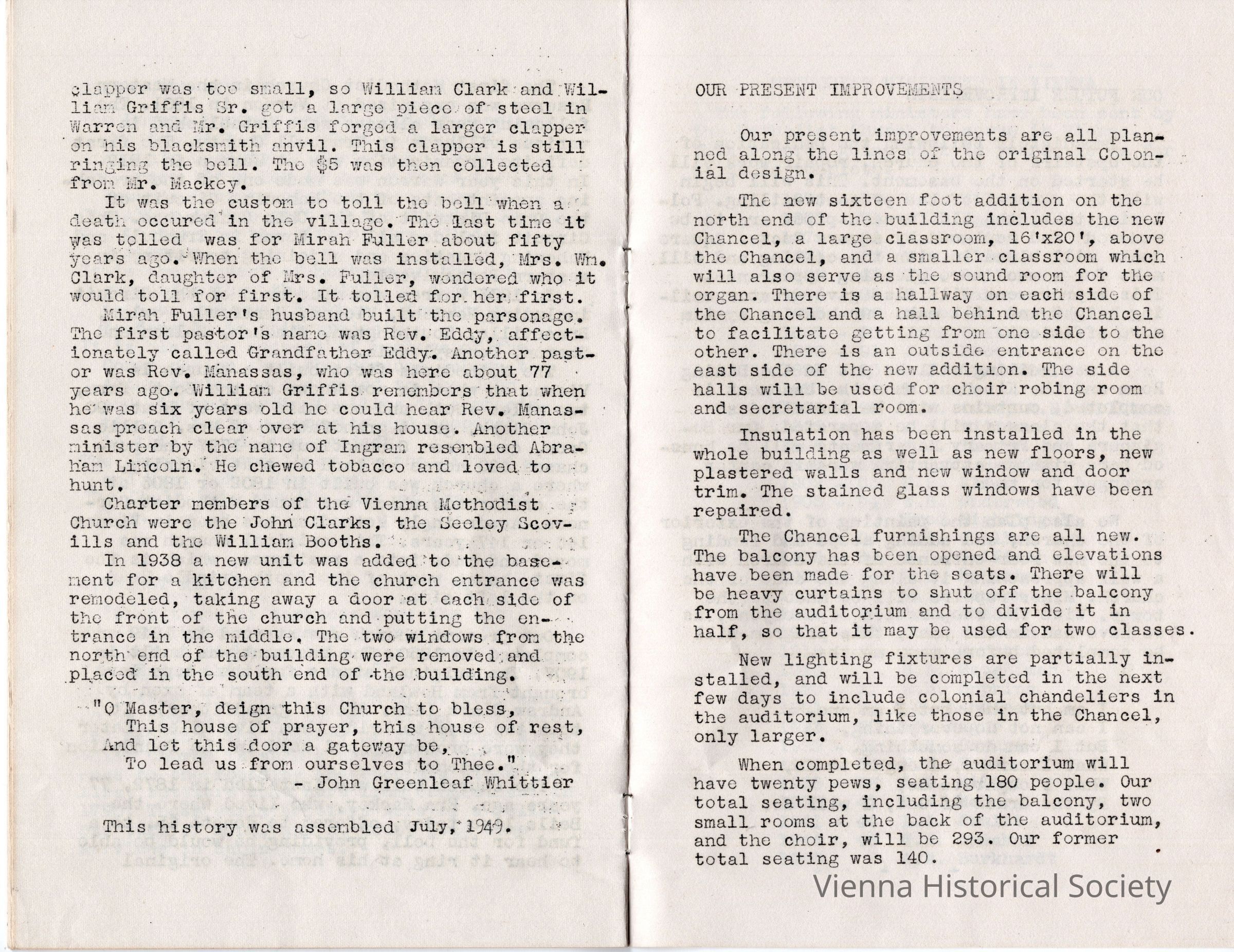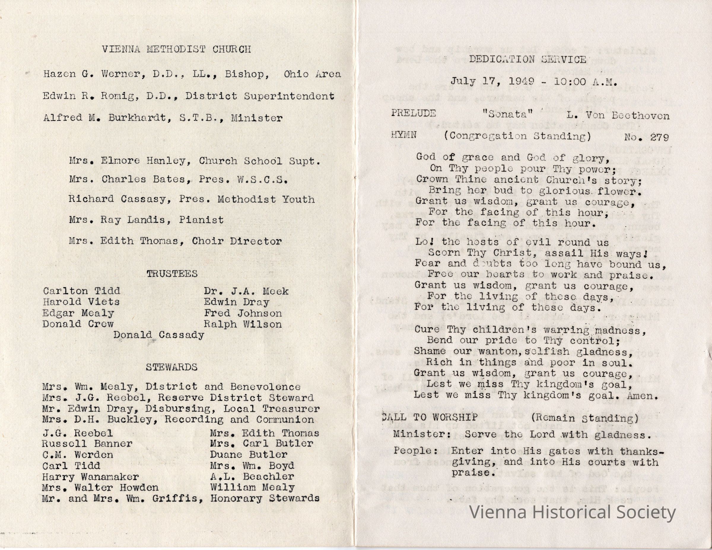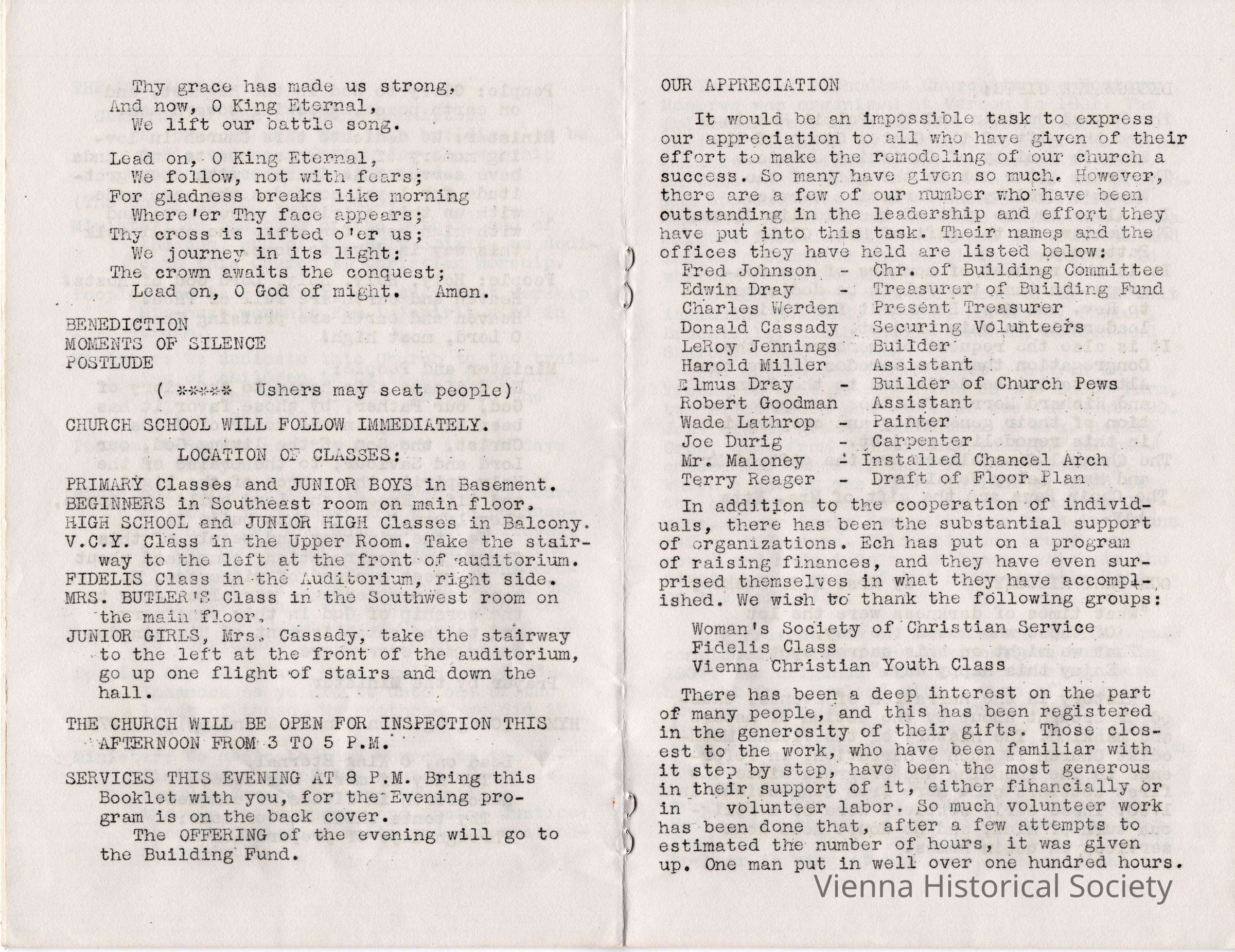 Vienna Methodist Church Remodeling Dedication Pamphlet, July 17, 1949Collection