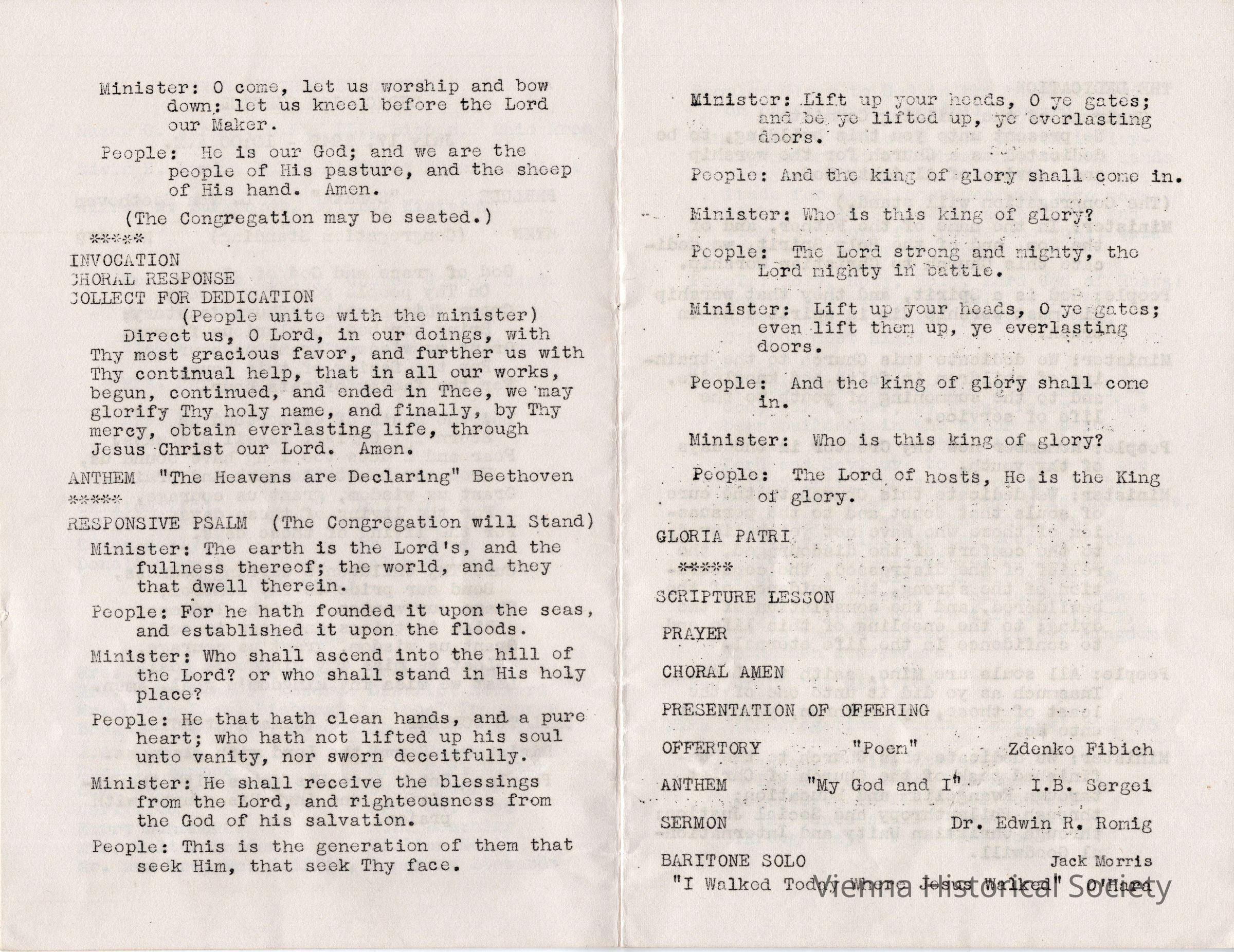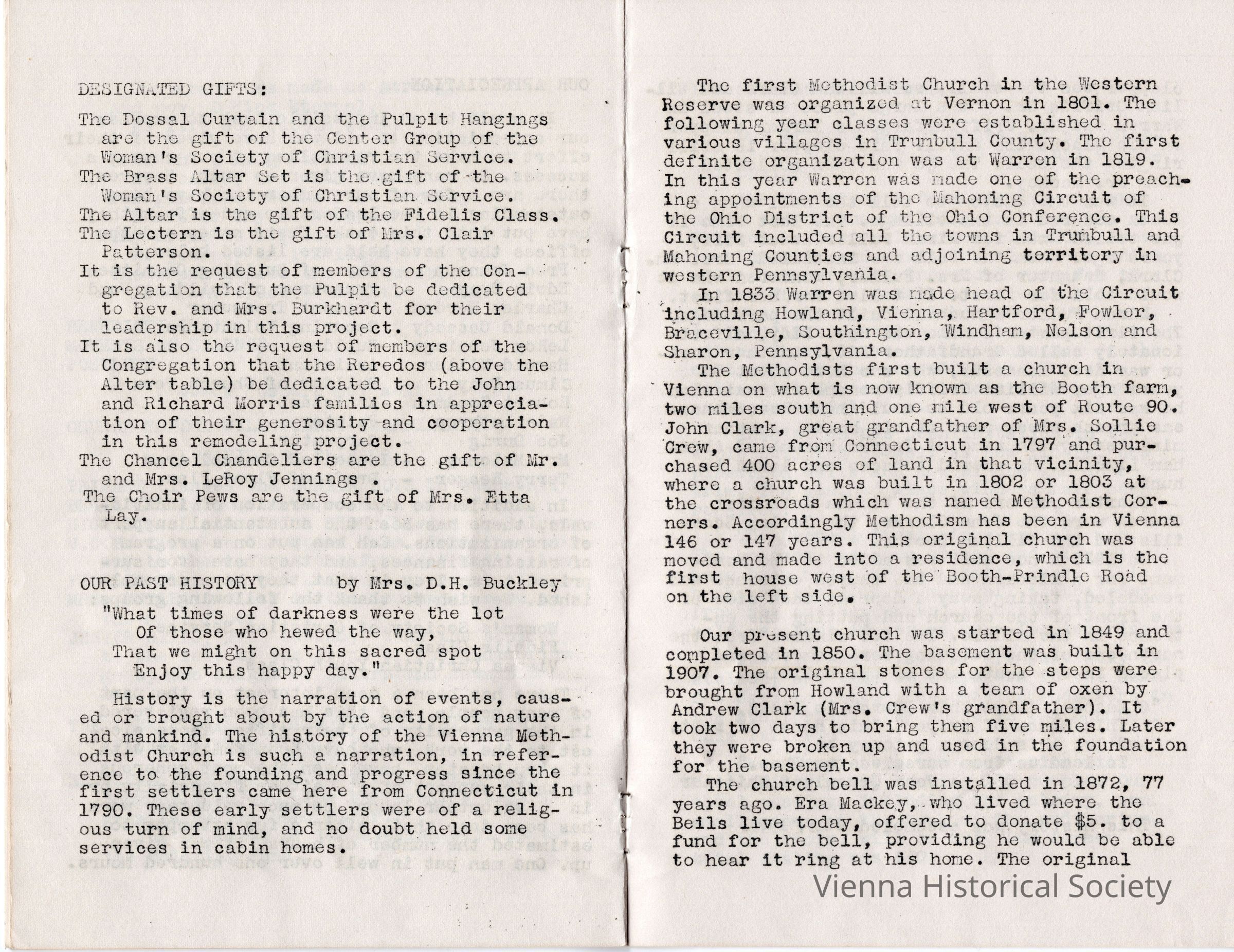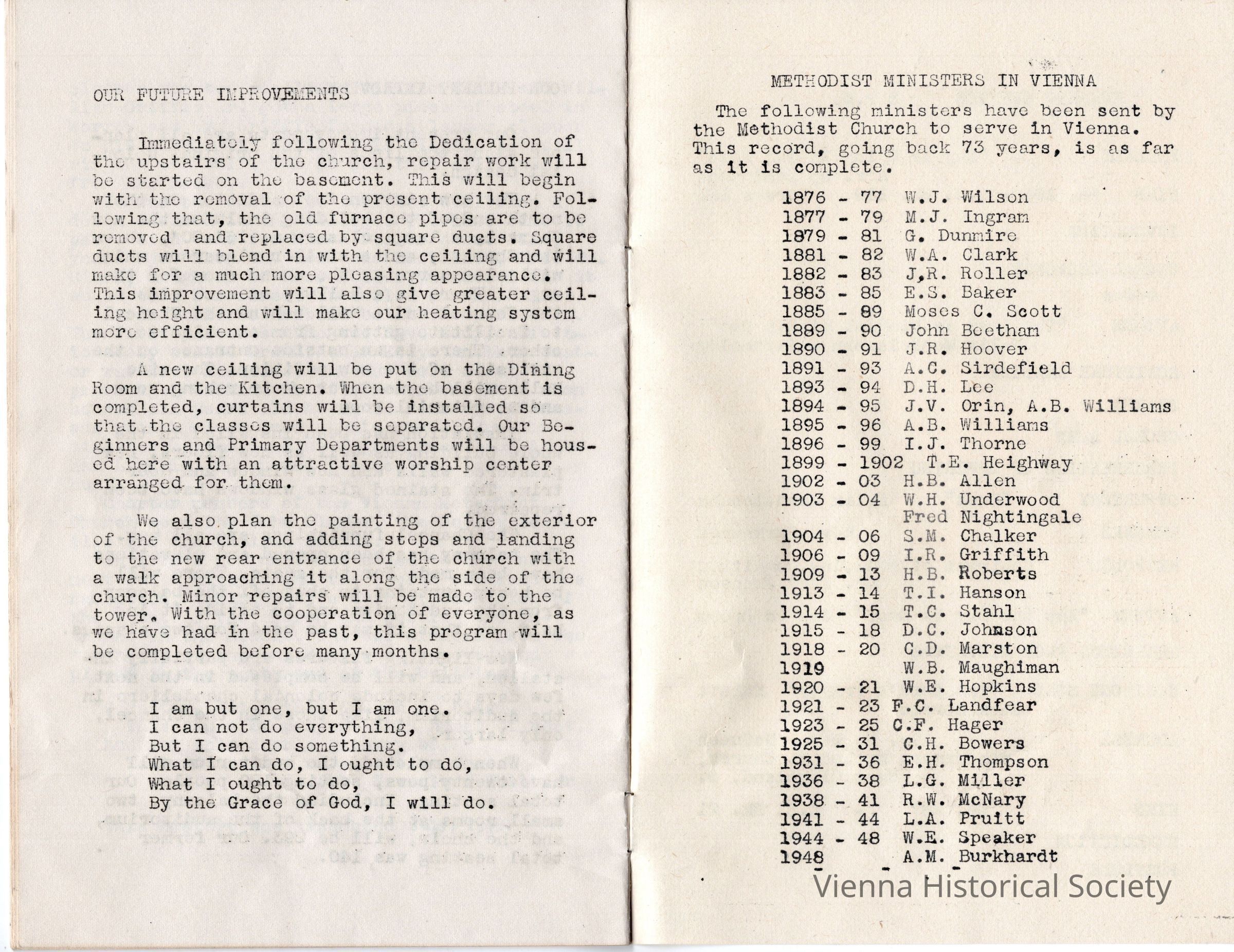 Vienna Methodist Church Remodeling Dedication Pamphlet, July 17, 1949Collection