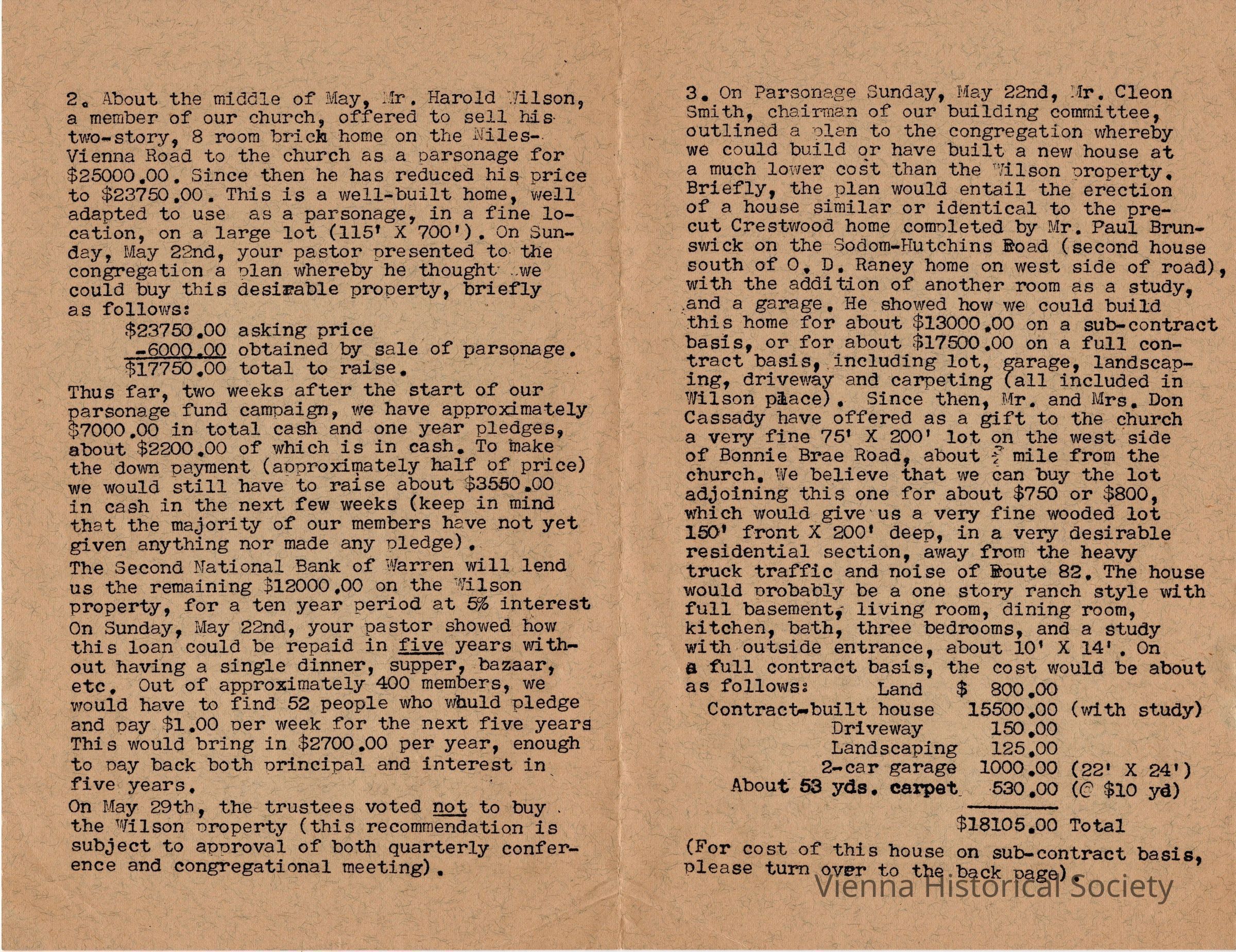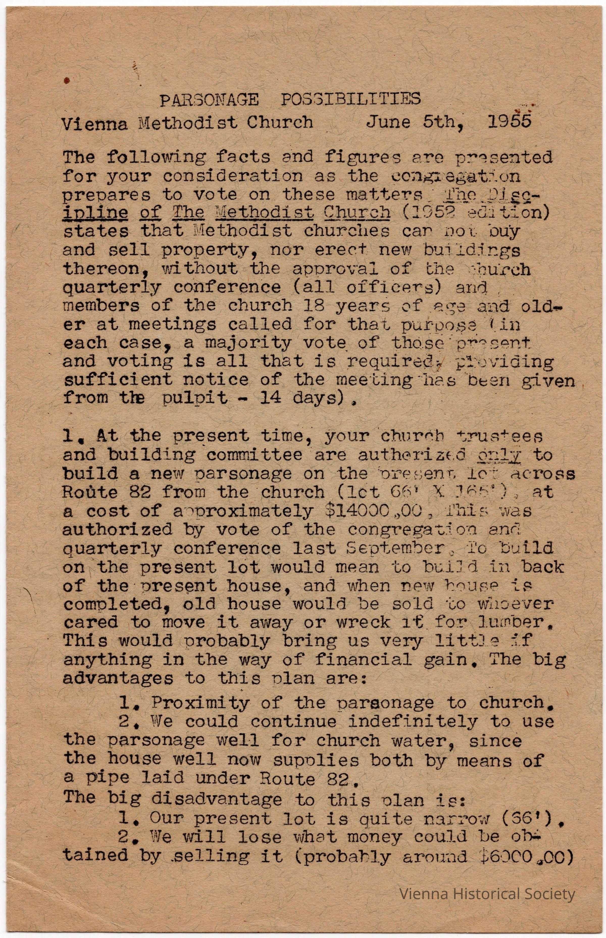 Vienna Methodist Church Bulletin, June 5, 1955Collection
