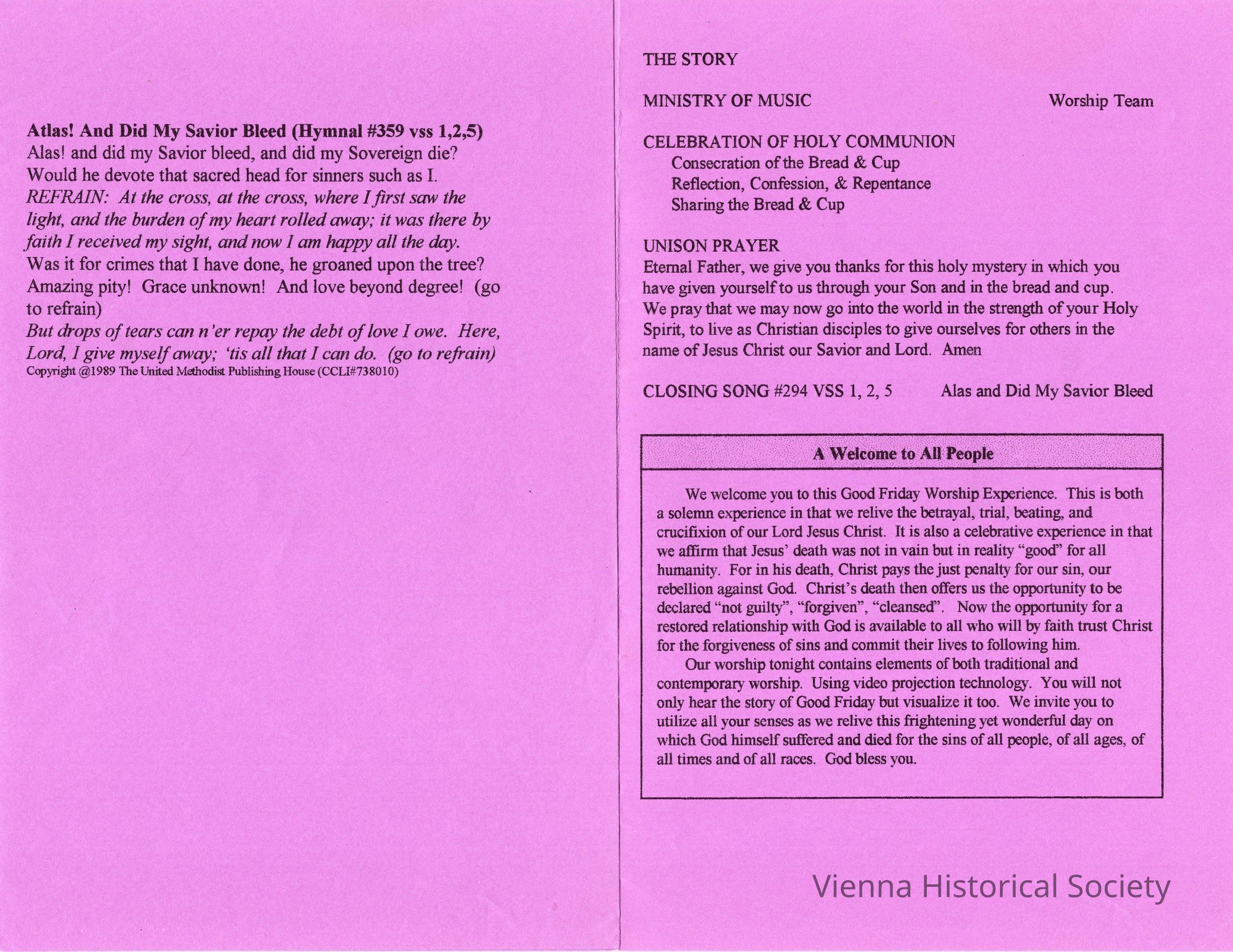 Vienna United Methodist Church Service Program - April 2, 1999Collection