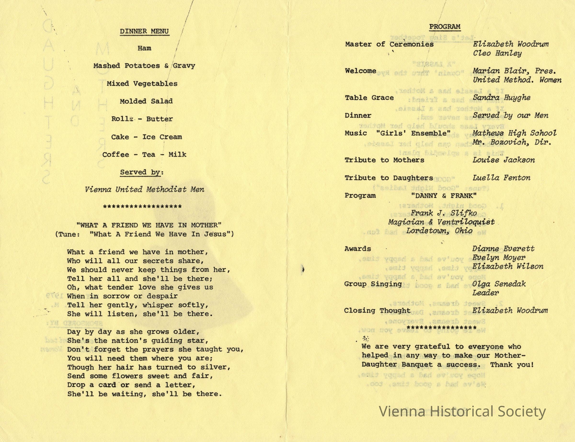 Vienna Presbyterian Church Women, Mother Daughter Banquet Program, 1979Collection