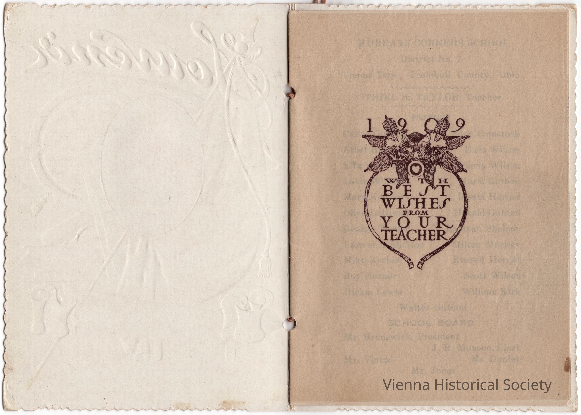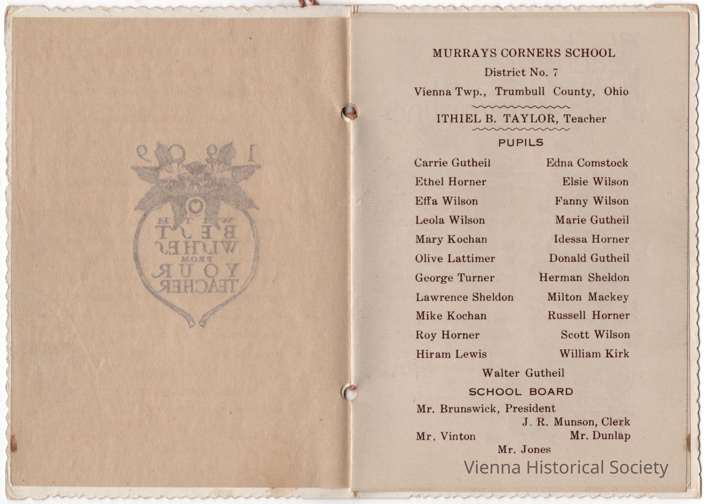 Murray's Corners School (Vienna School #7) Souvenir Program, Ithiel Taylor, Teacher, 1909Collection