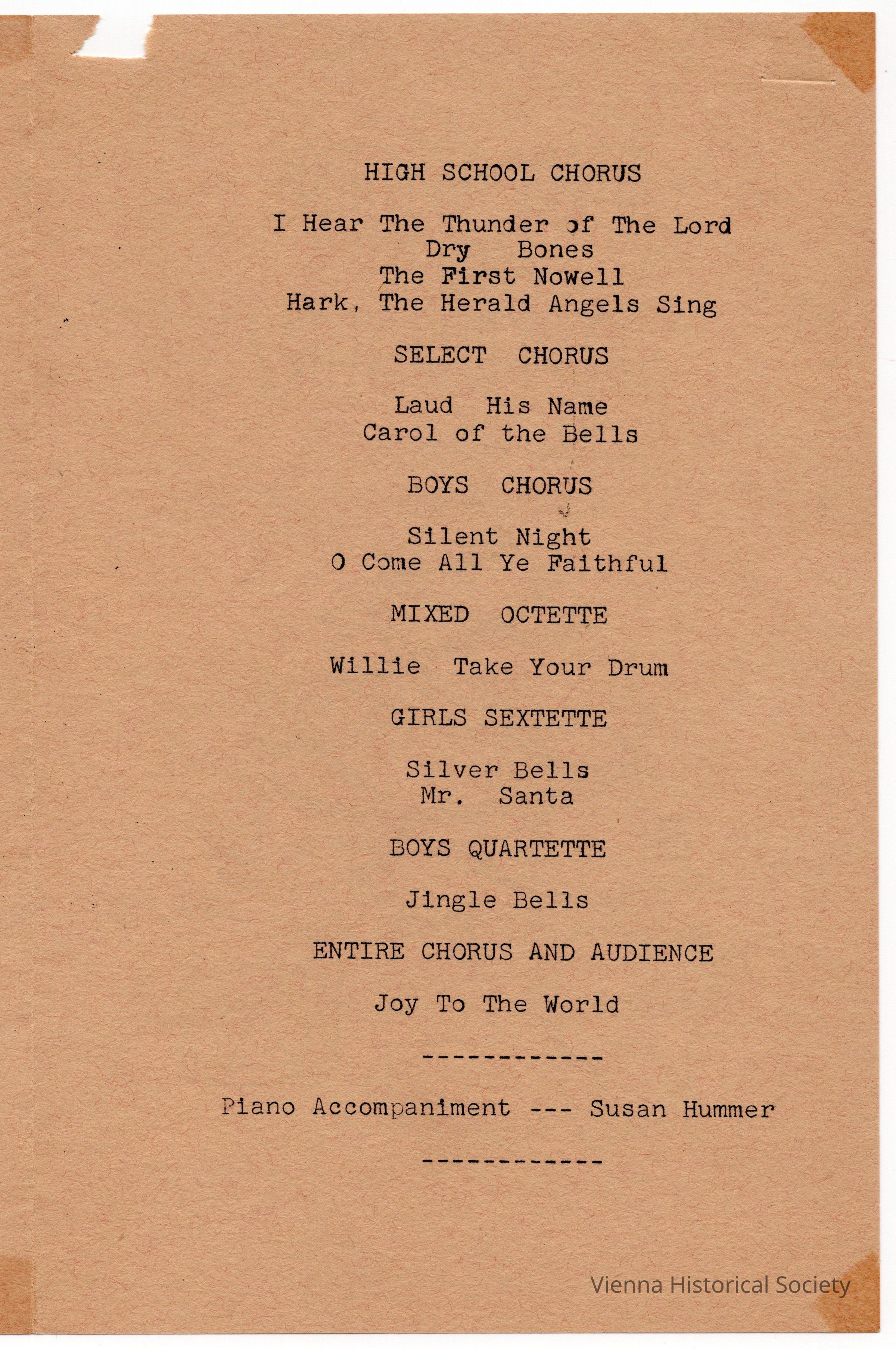 Mathews High School Band and Chorus, Christmas Concert Program, December 17, 1962Collection