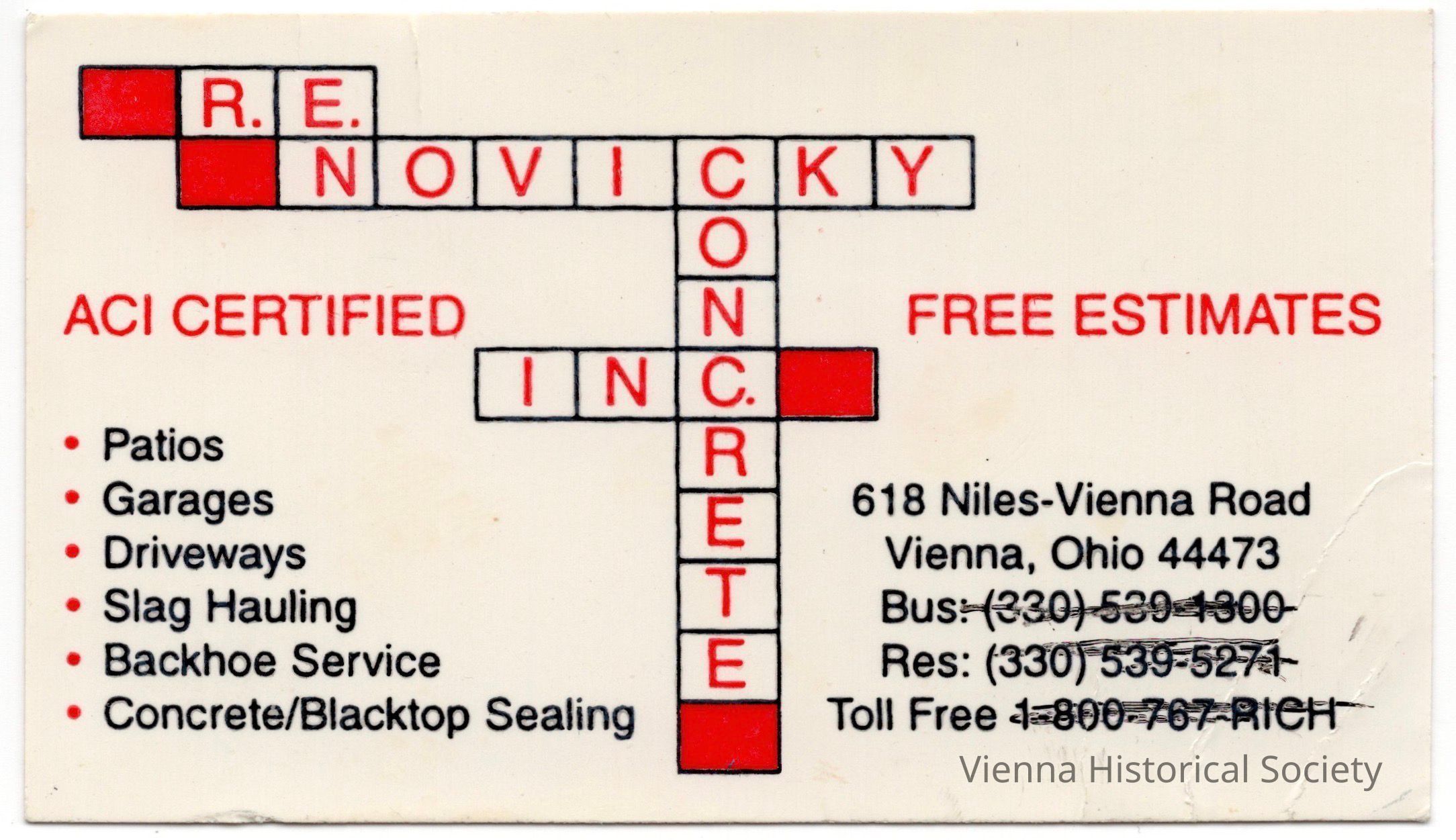 R. E. Novicky Concrete Incorporated Business CardCollection