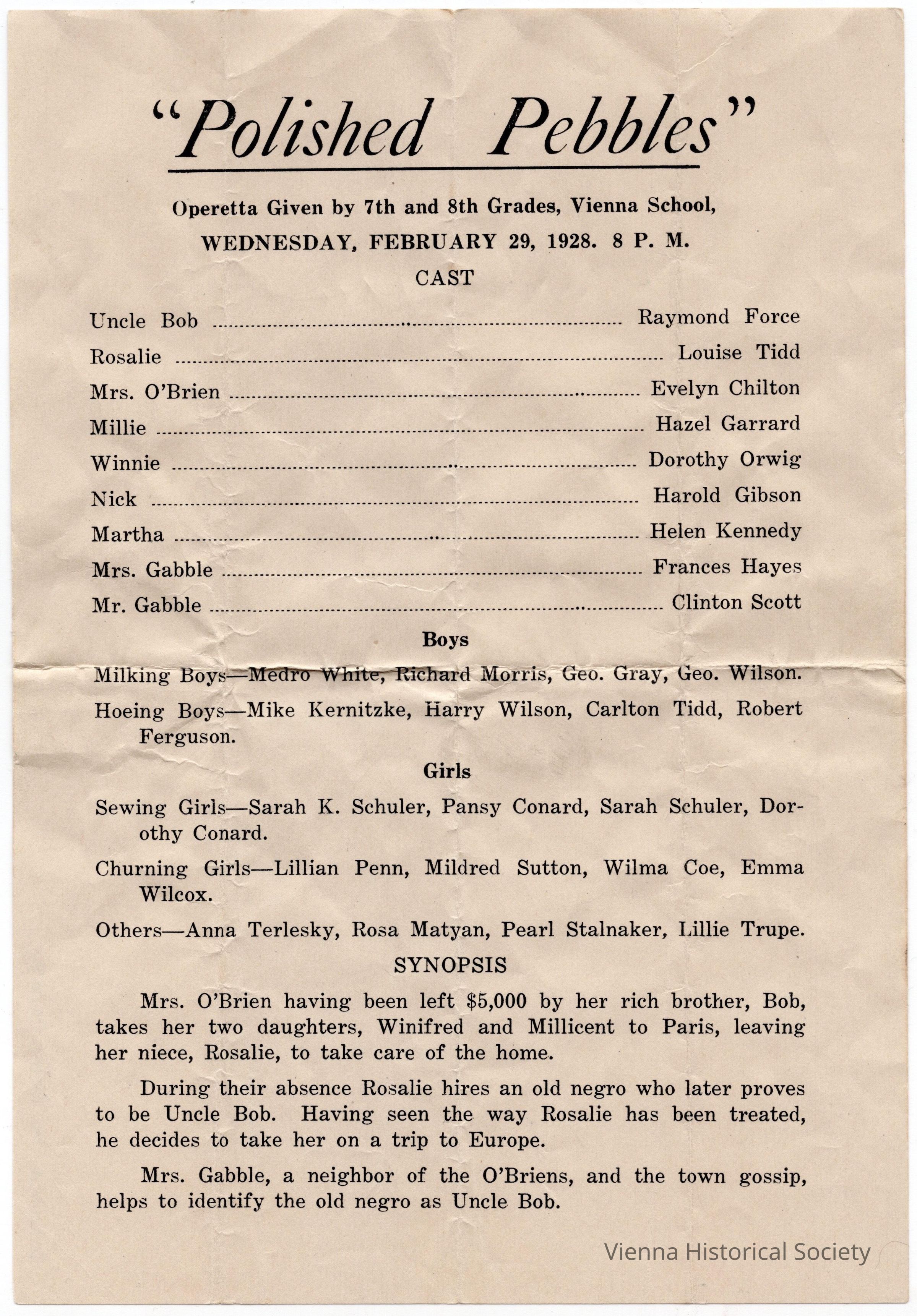 Vienna School Polished Pebbles Operetta Program, 7th & 8th grade, 1928Collection