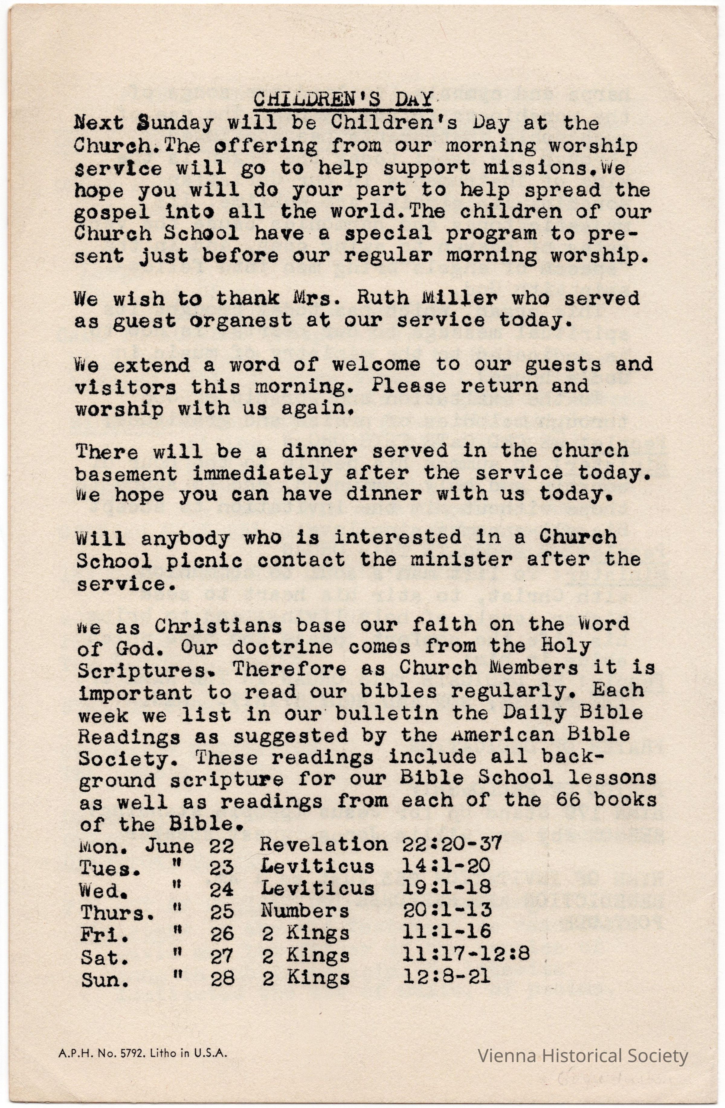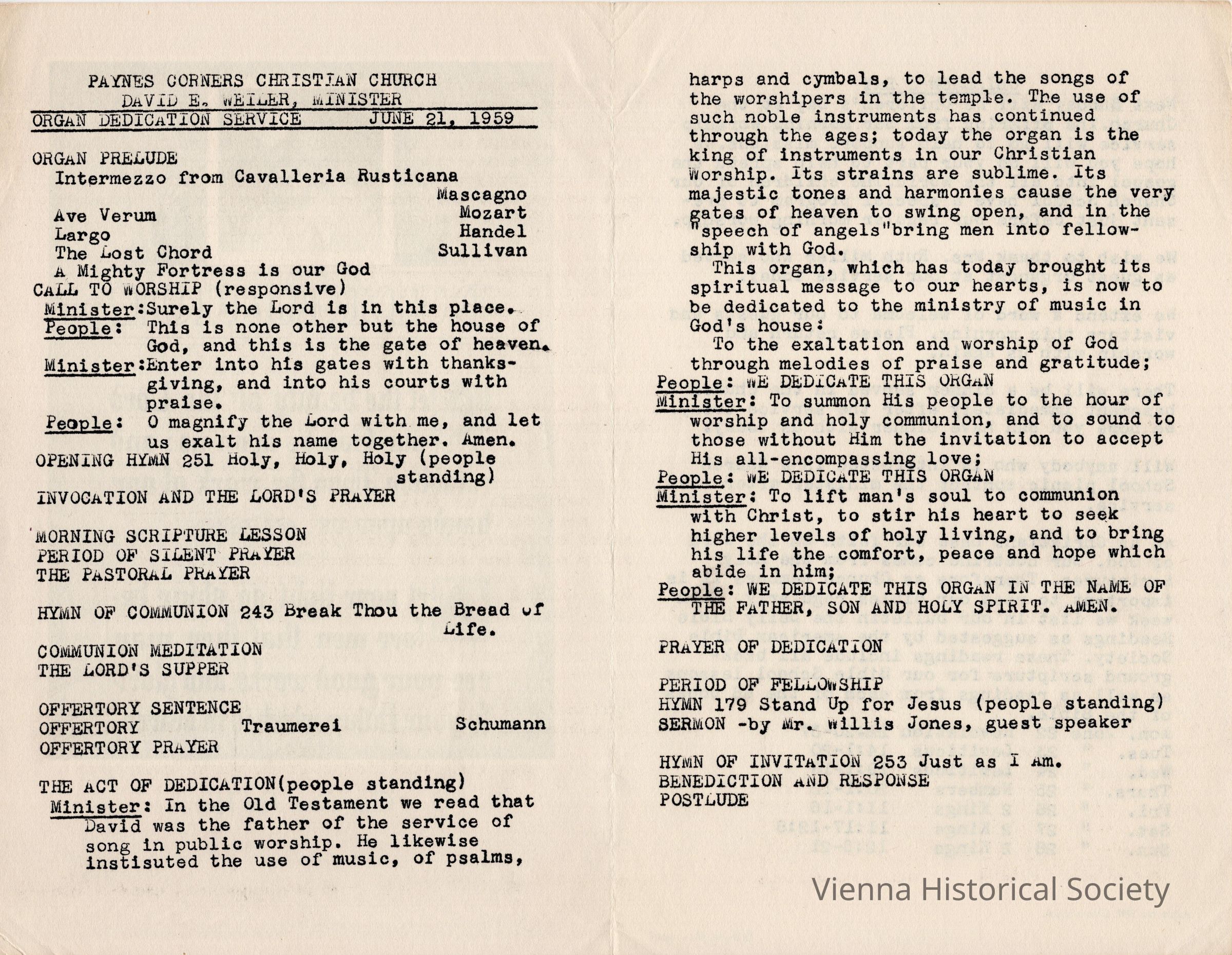 Payne's Corners Church Organ Dedication Program, June 21, 1959Collection