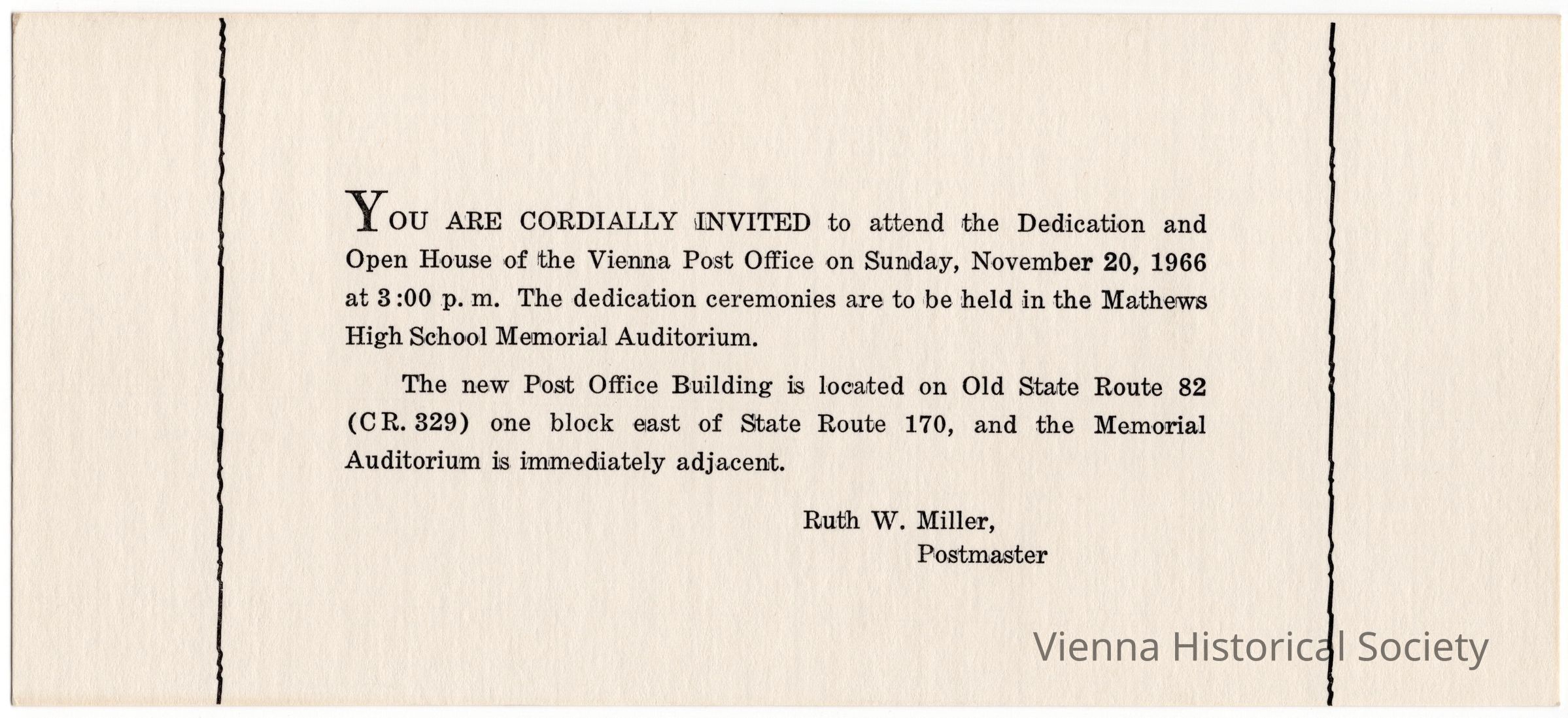 Vienna Township Post Office Dedication & Open House Invitation, 1966Collection