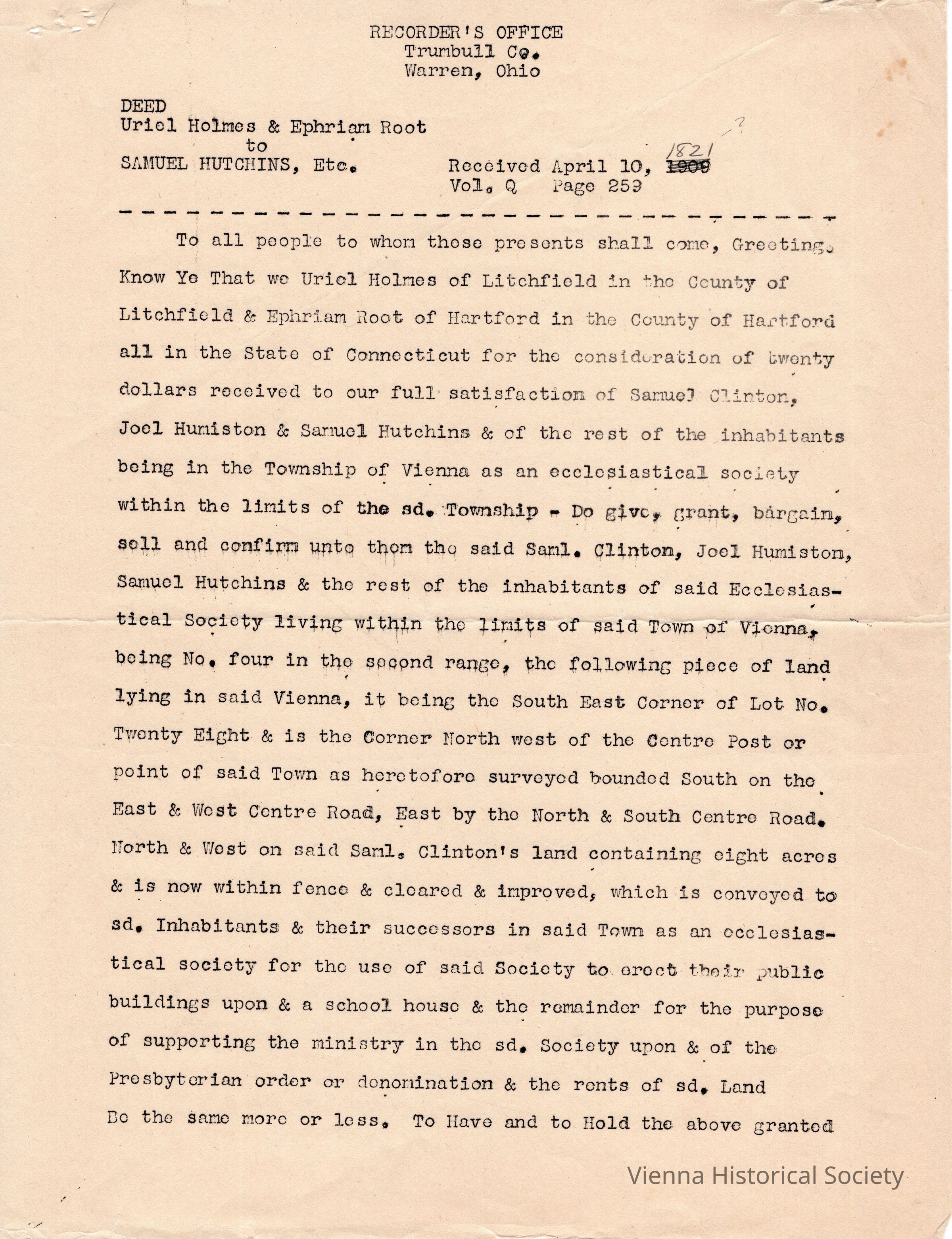 Presbyterian Land DeedEntry/Object ID
