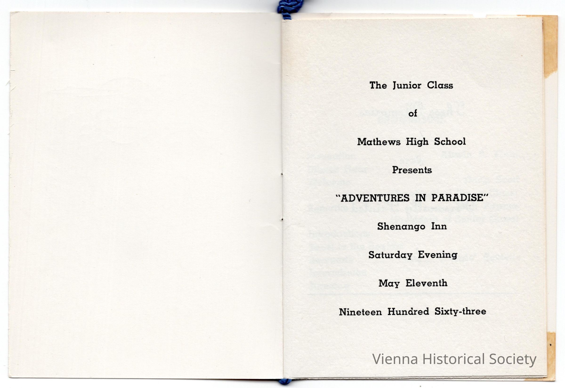 Mathews High School Prom Booklet, Adventures in Paradise, May 11, 1963Collection