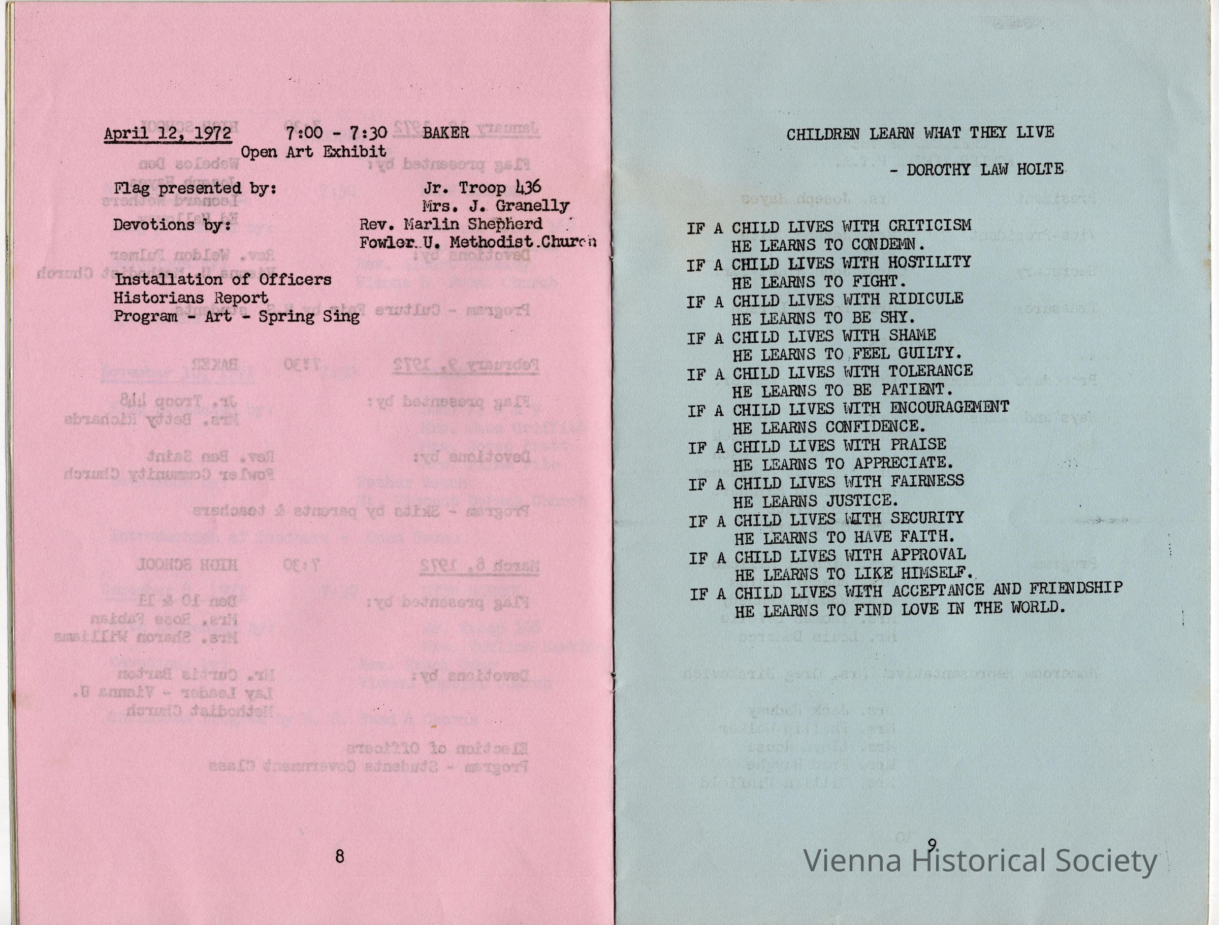 Mathews Local Schools Parent Teacher Association Booklet, 1971-1972 school yearCollection