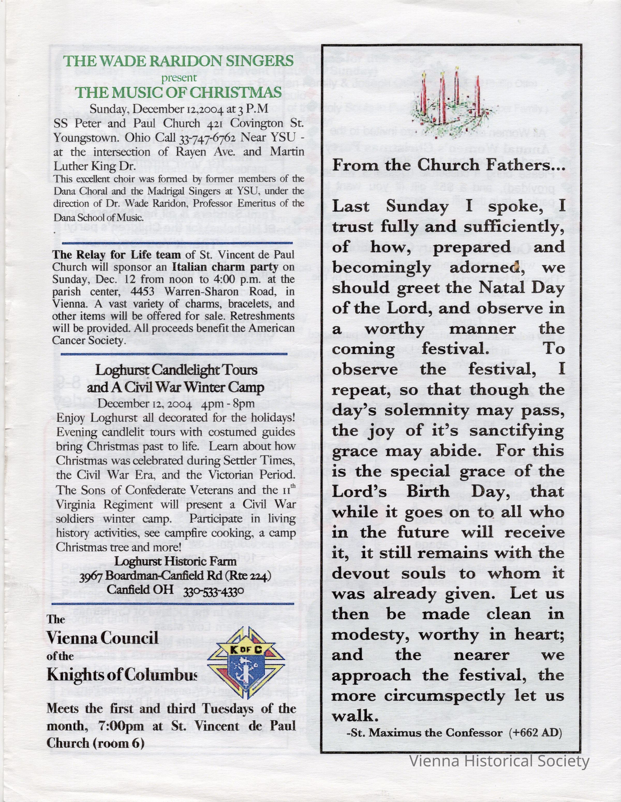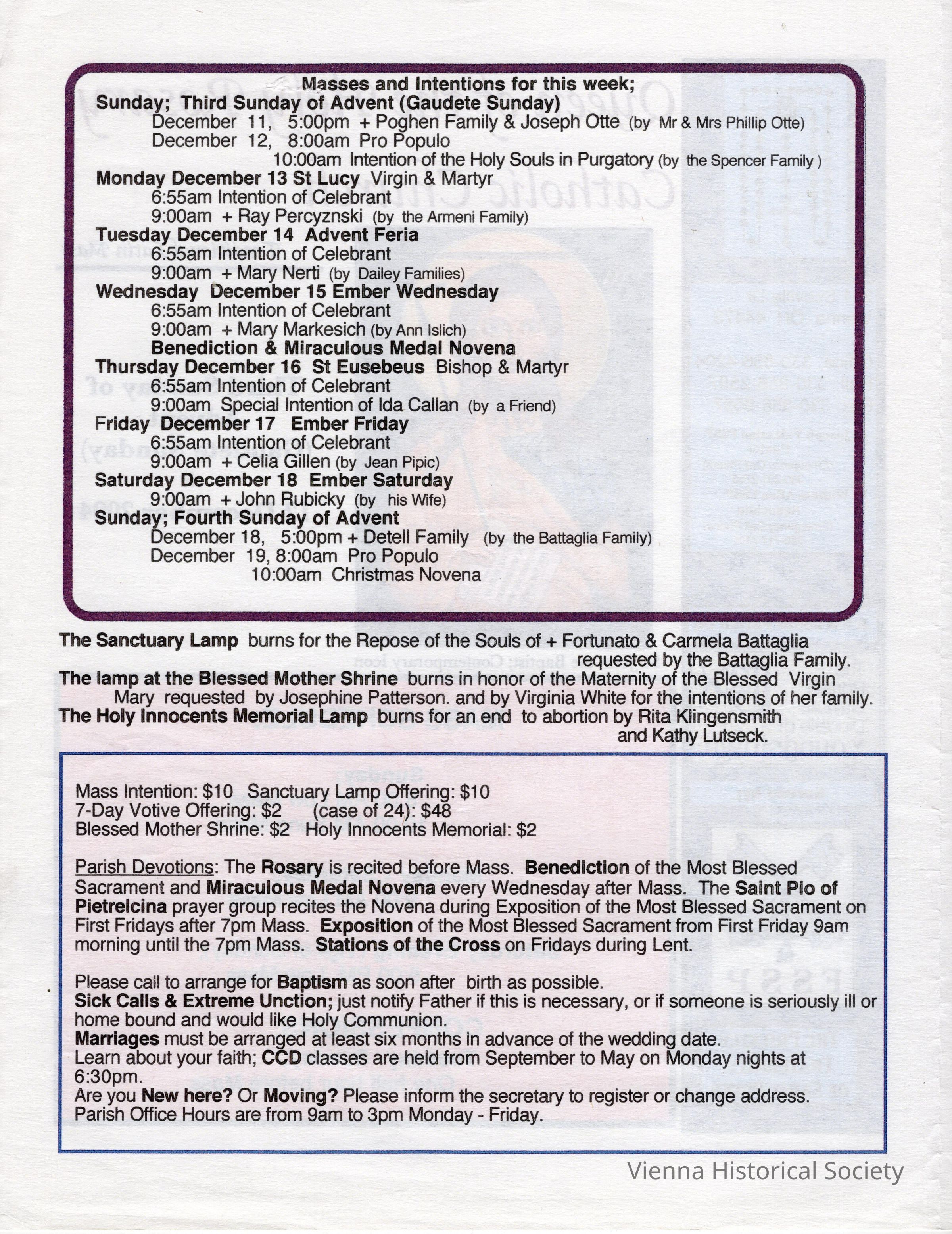 Queen of the Holy Rosary Catholic Church Bulletin, December 12, 2004Collection