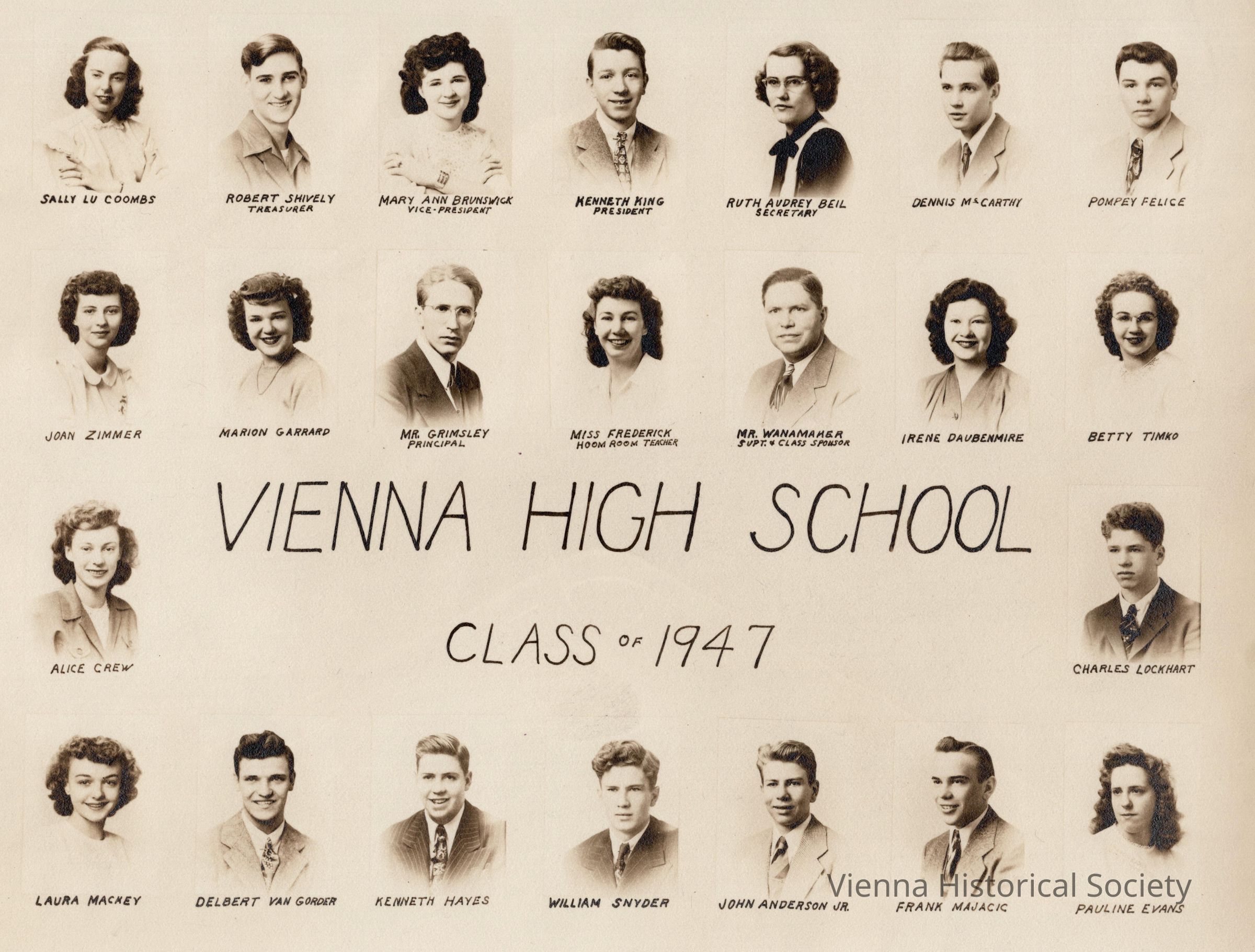 Majecic, Frank, Coombs, Sally, Evans, Pauline, Mackey, Laura, Crew, Alice, Shively, Robert, Grimsley, Lee, Lockhart, Claude Charles, Timko, Betty, Beil, Ruth, Wanamaker, John Harry, Brunswick, Mary, Daubenmire, Irene, Anderson, John, Snyder, William, VanGorder, Delbert, King, Kenneth, Garrard, Marian, McCarthy, Dennis, Zimmer, Joan, Felice, Pompey, Hayes, Kenneth