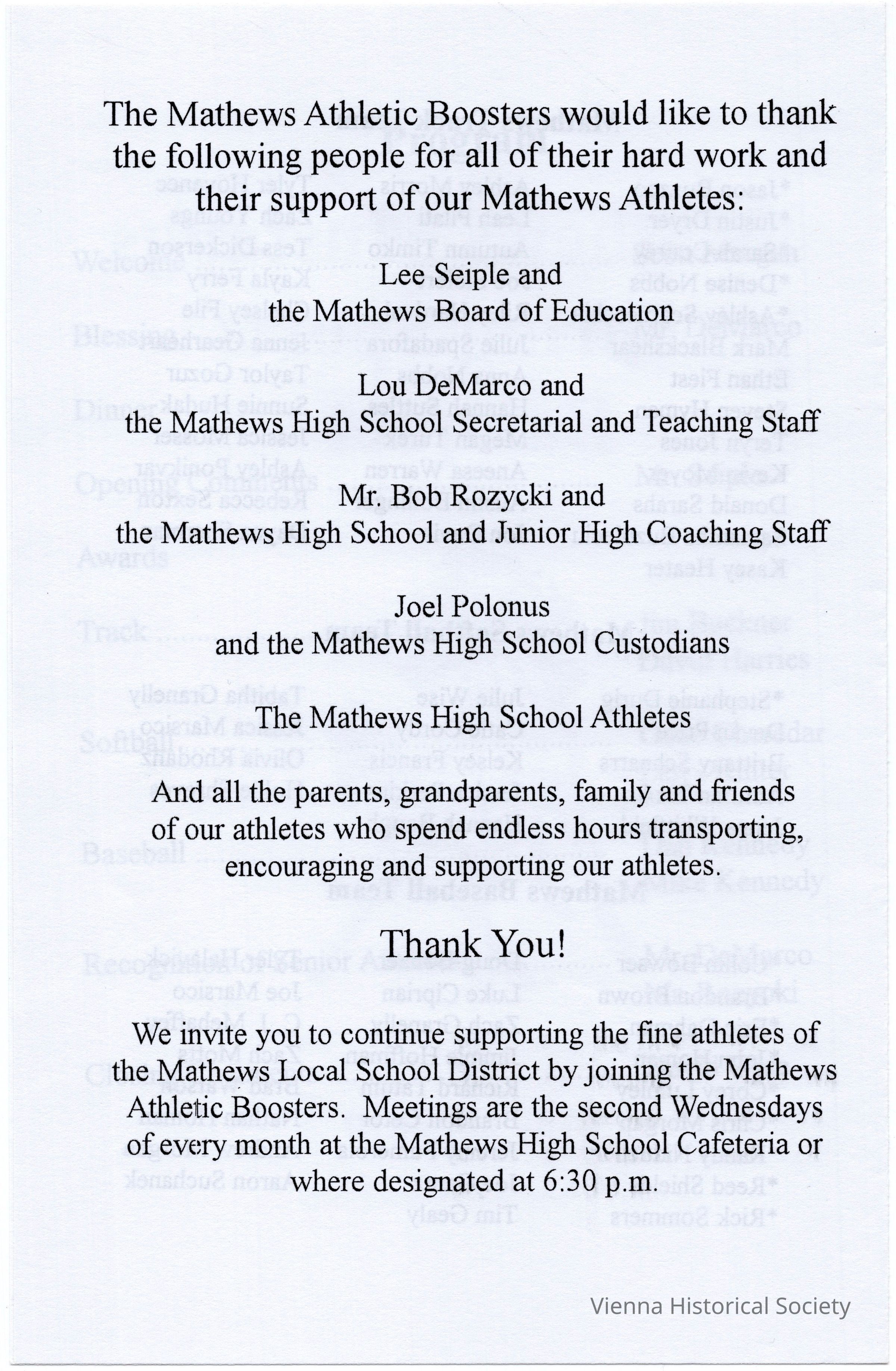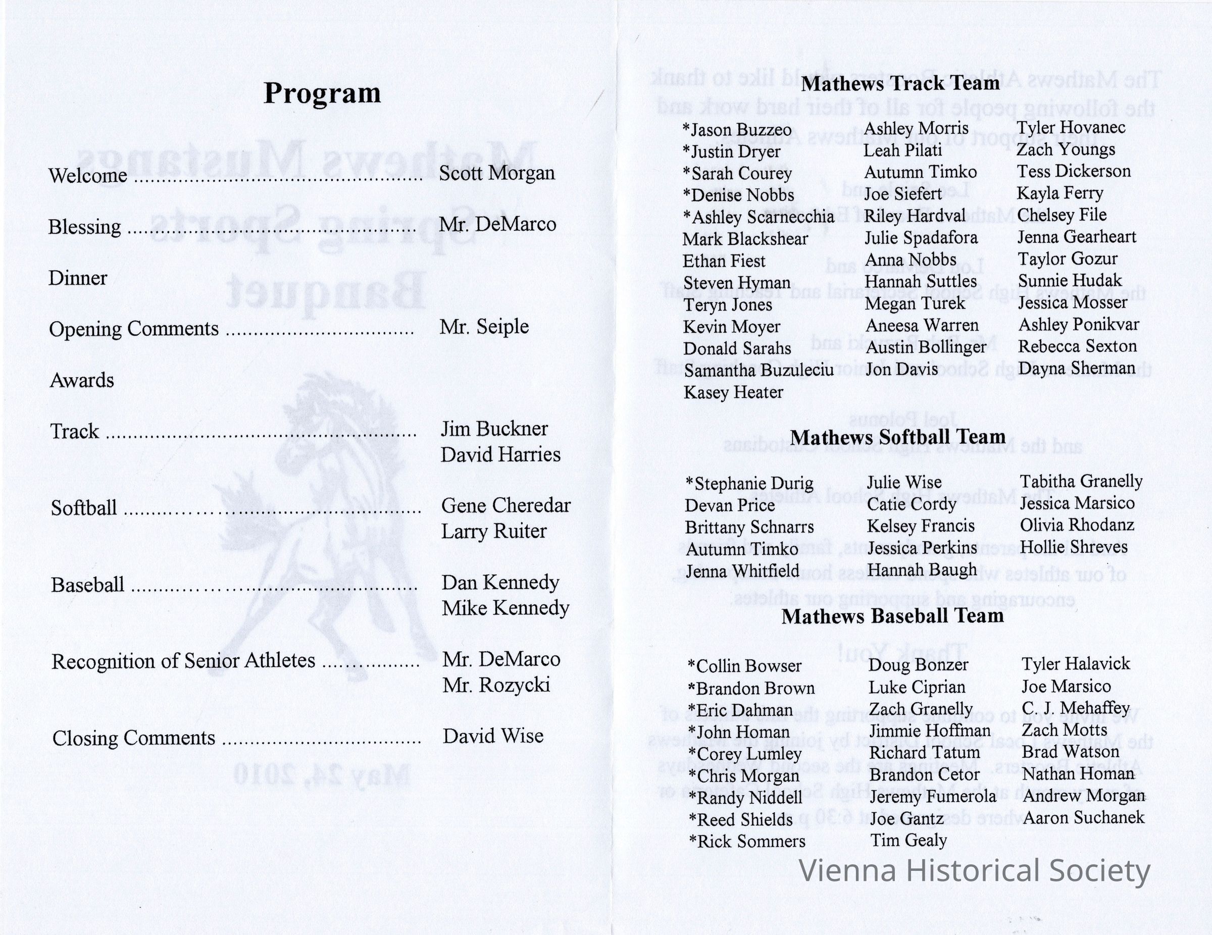 Mathews High School Spring Sports Banquet Program, 2010Collection