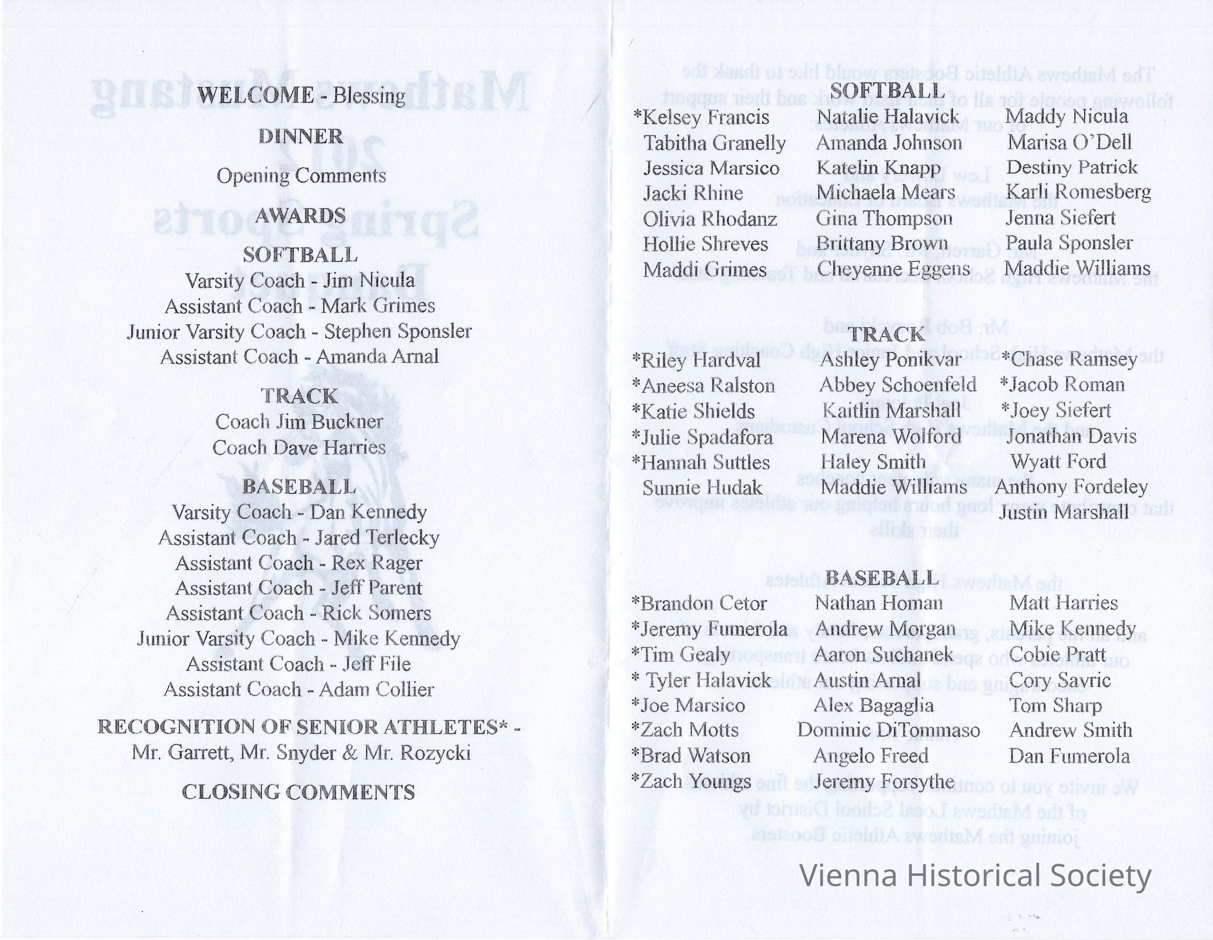 Mathews High School Spring Sports Banquet Program, 2012Collection