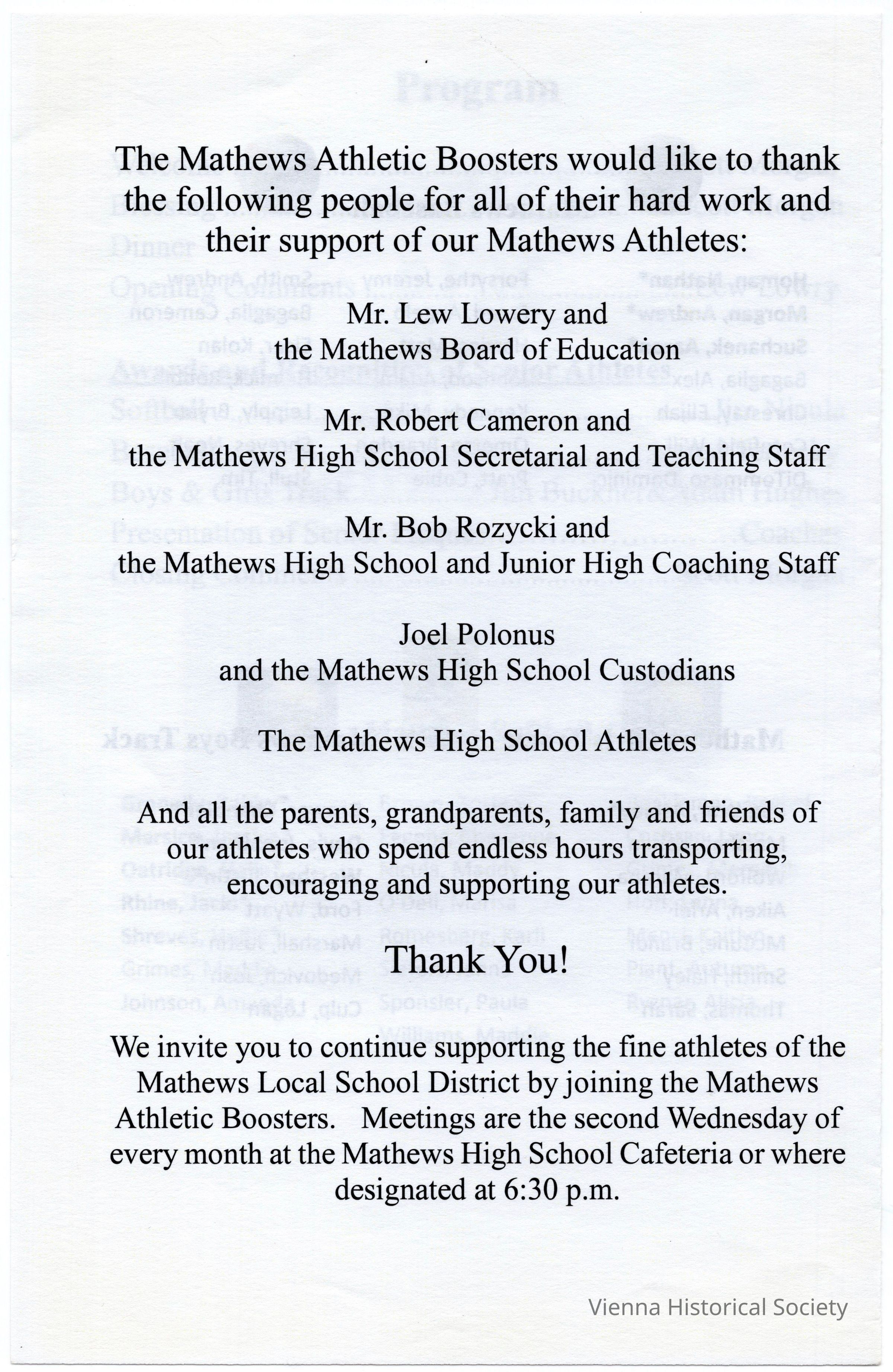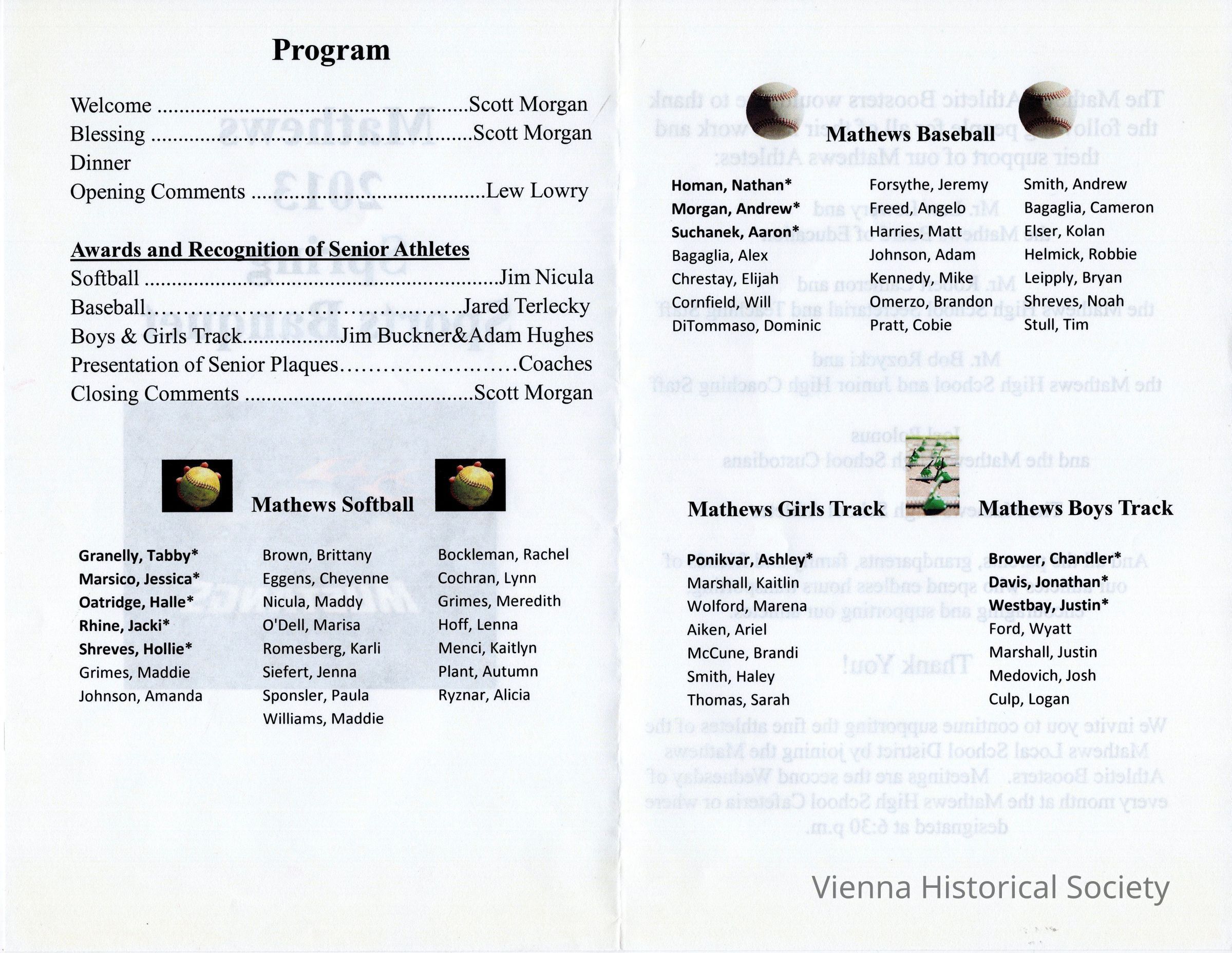 Mathews High School Spring Sports Banquet Program, 2013Collection