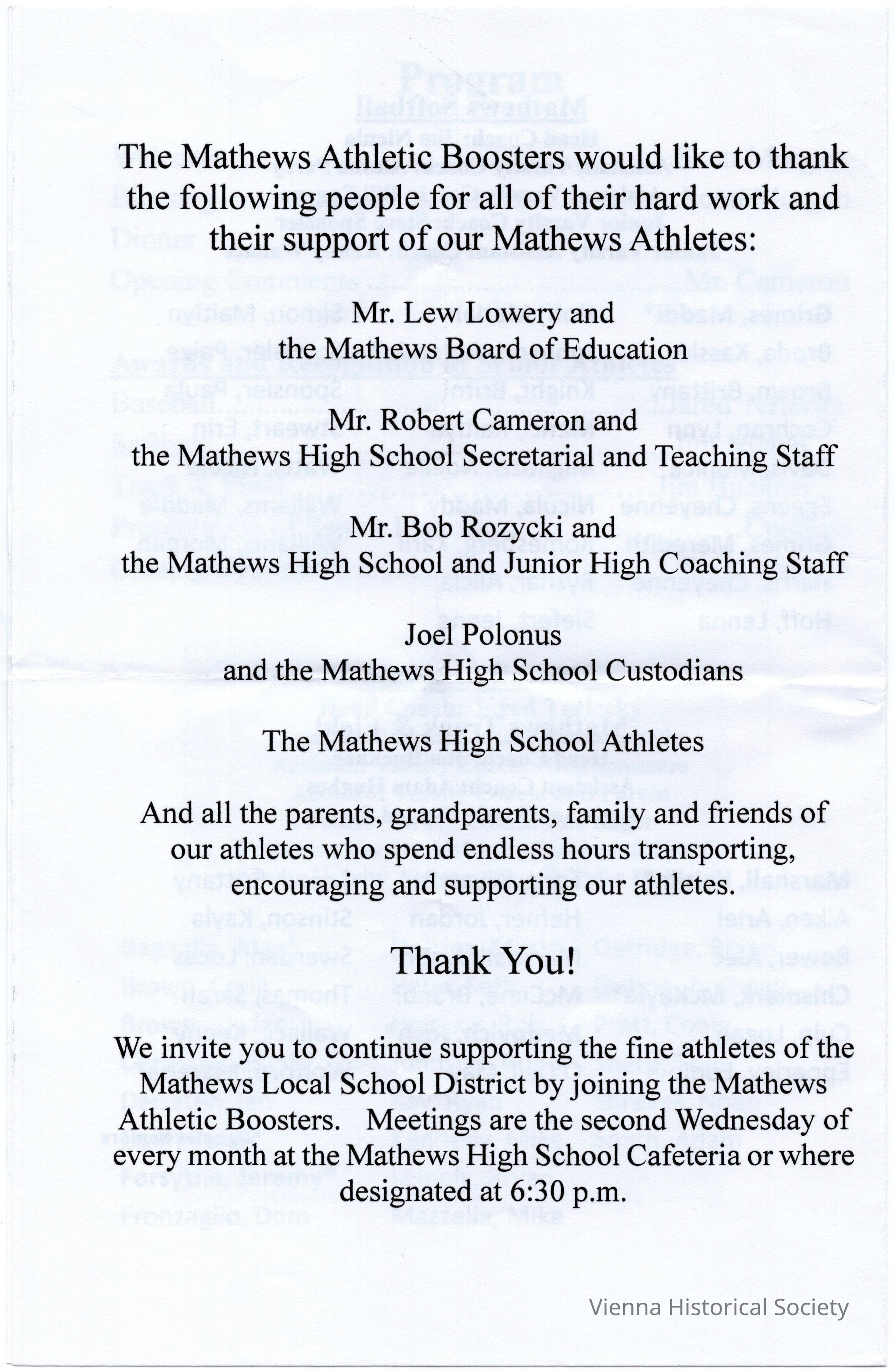 Mathews High School Spring Sports Banquet Program, 2013-2014Collection