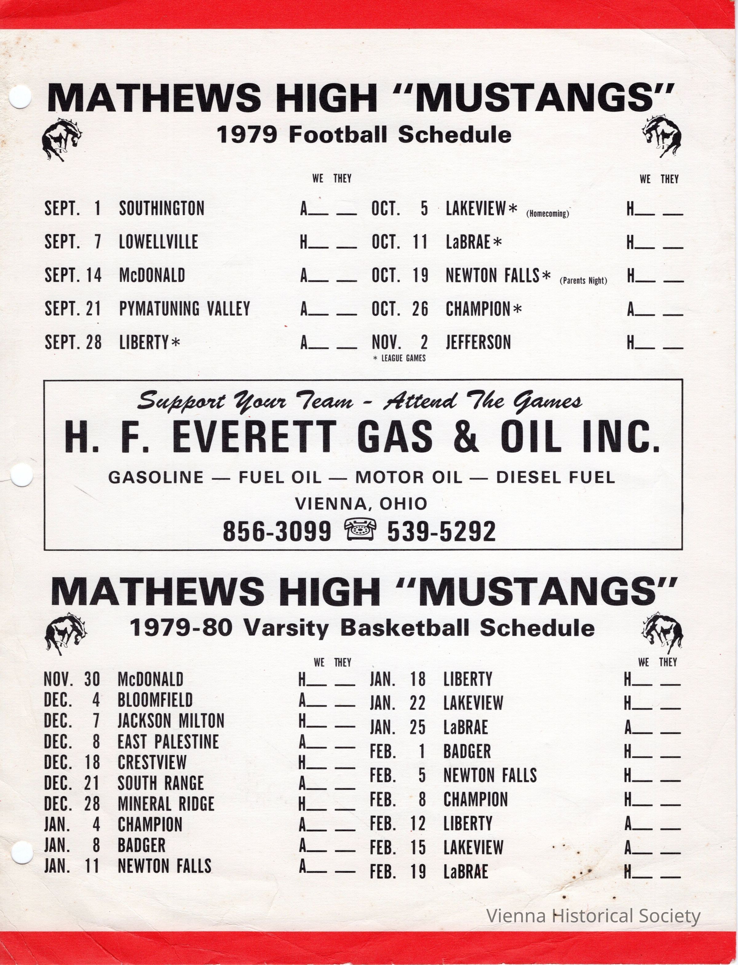 Mathews High School Football & Basketball Schedules, 1979Collection