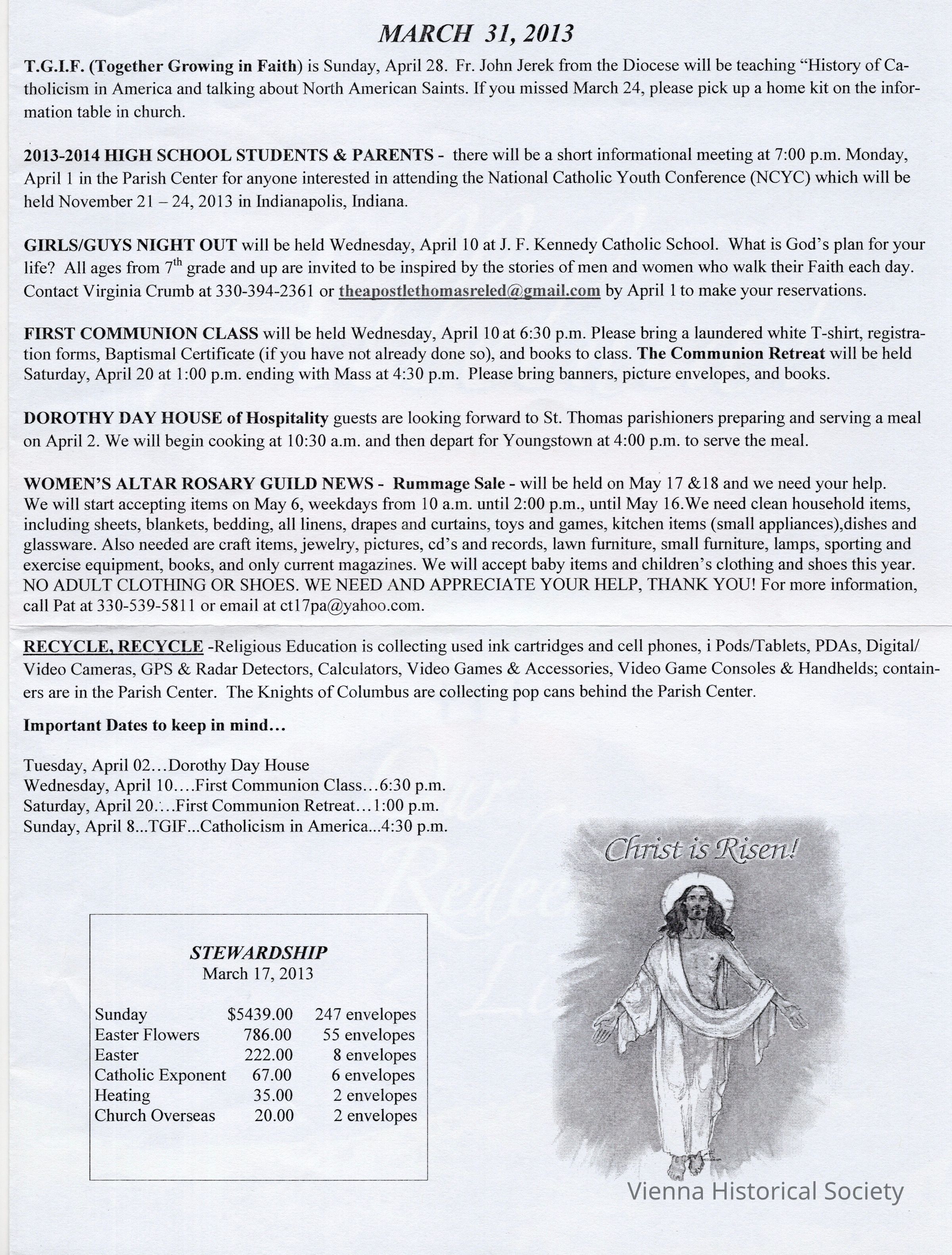 St. Thomas the Apostle Church Bulletin, March 31, 2013Collection