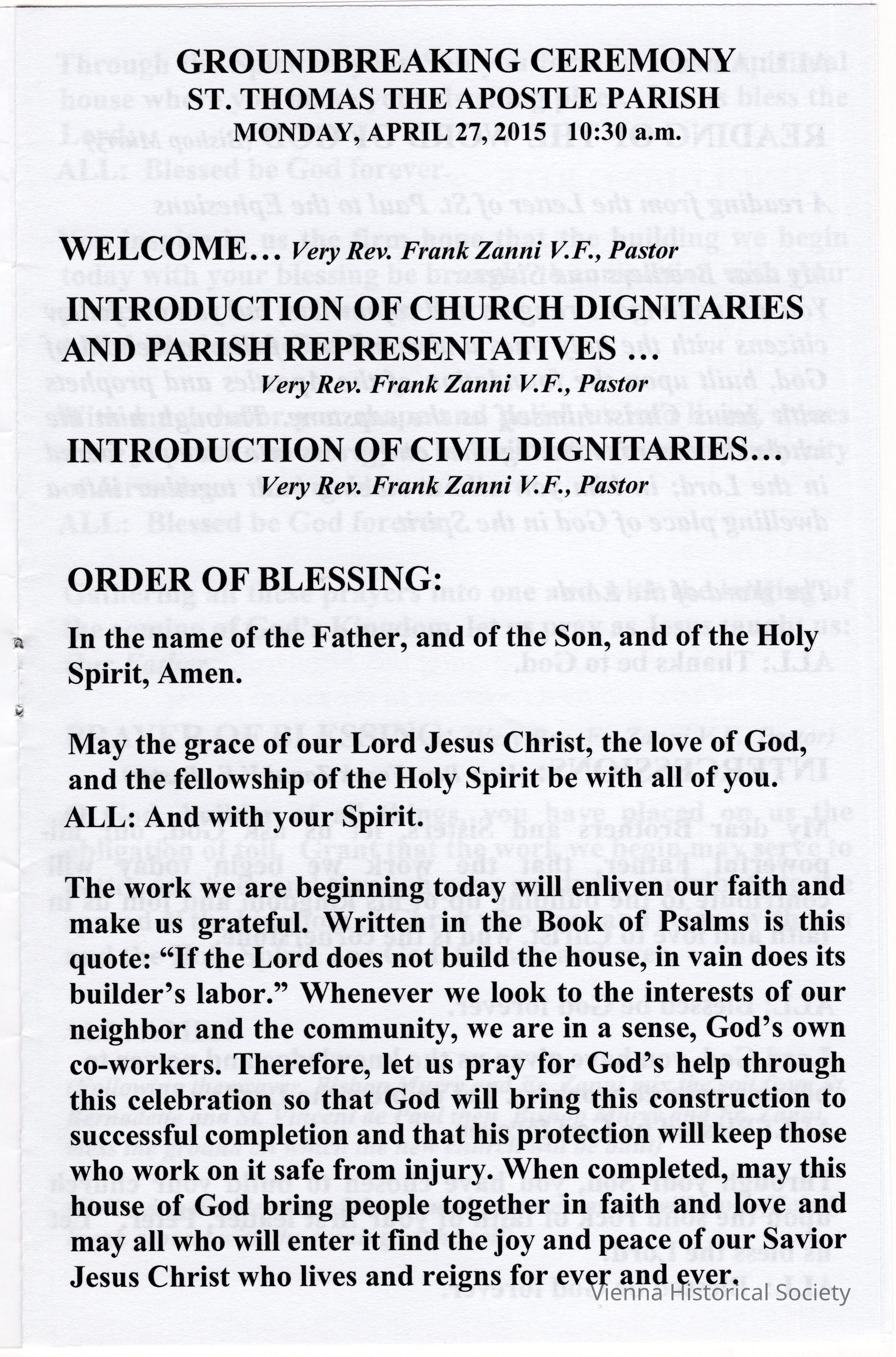 St. Thomas the Apostle Groundbreaking Ceremony Program, April 27, 2015Collection
