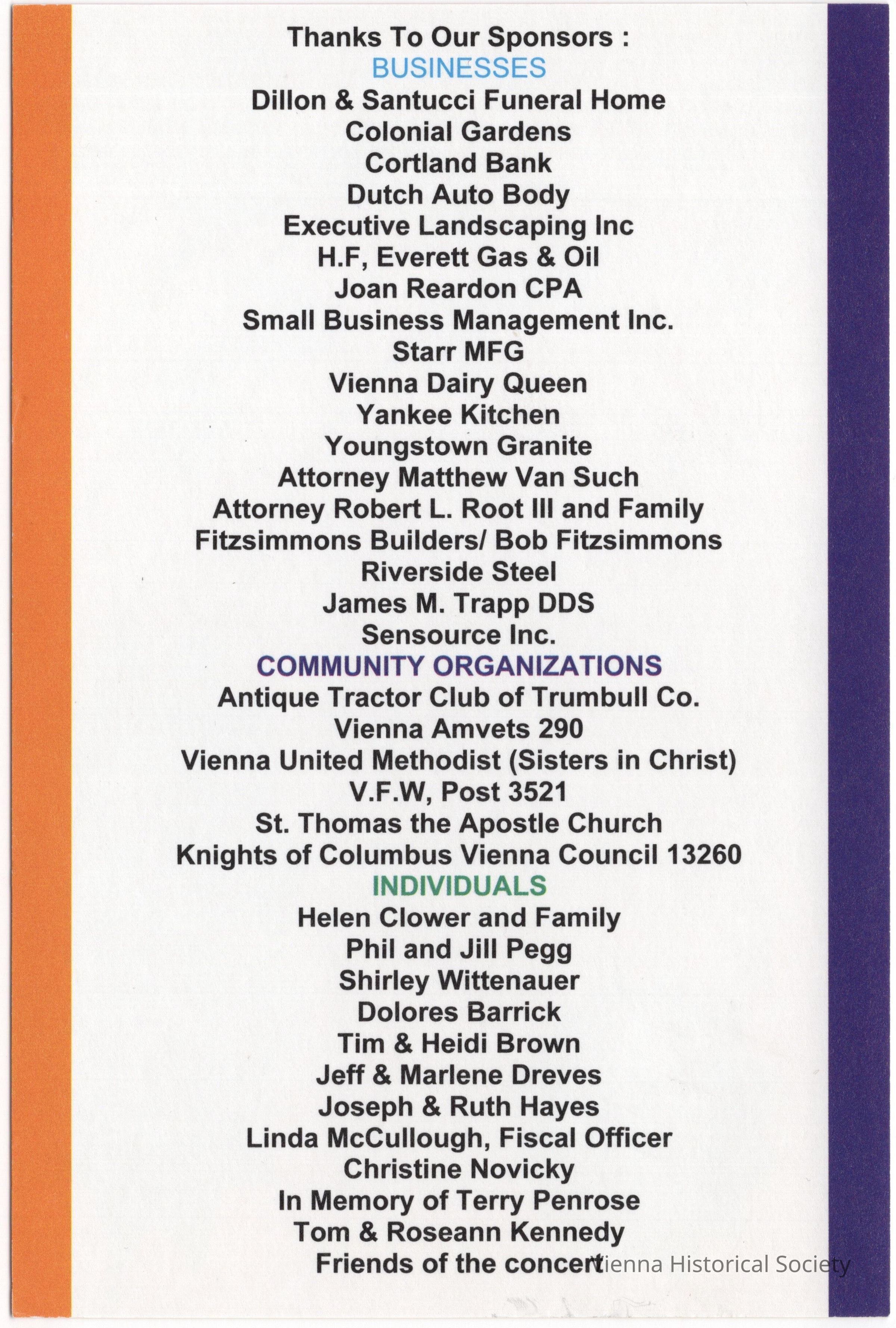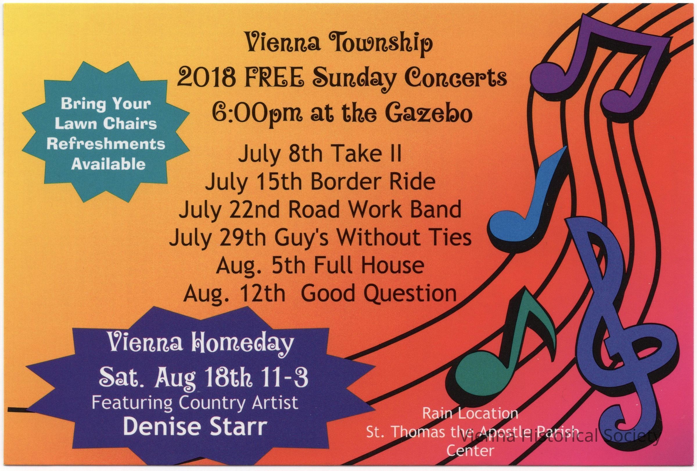 Vienna Township Summer Concerts Schedule, 2018Collection