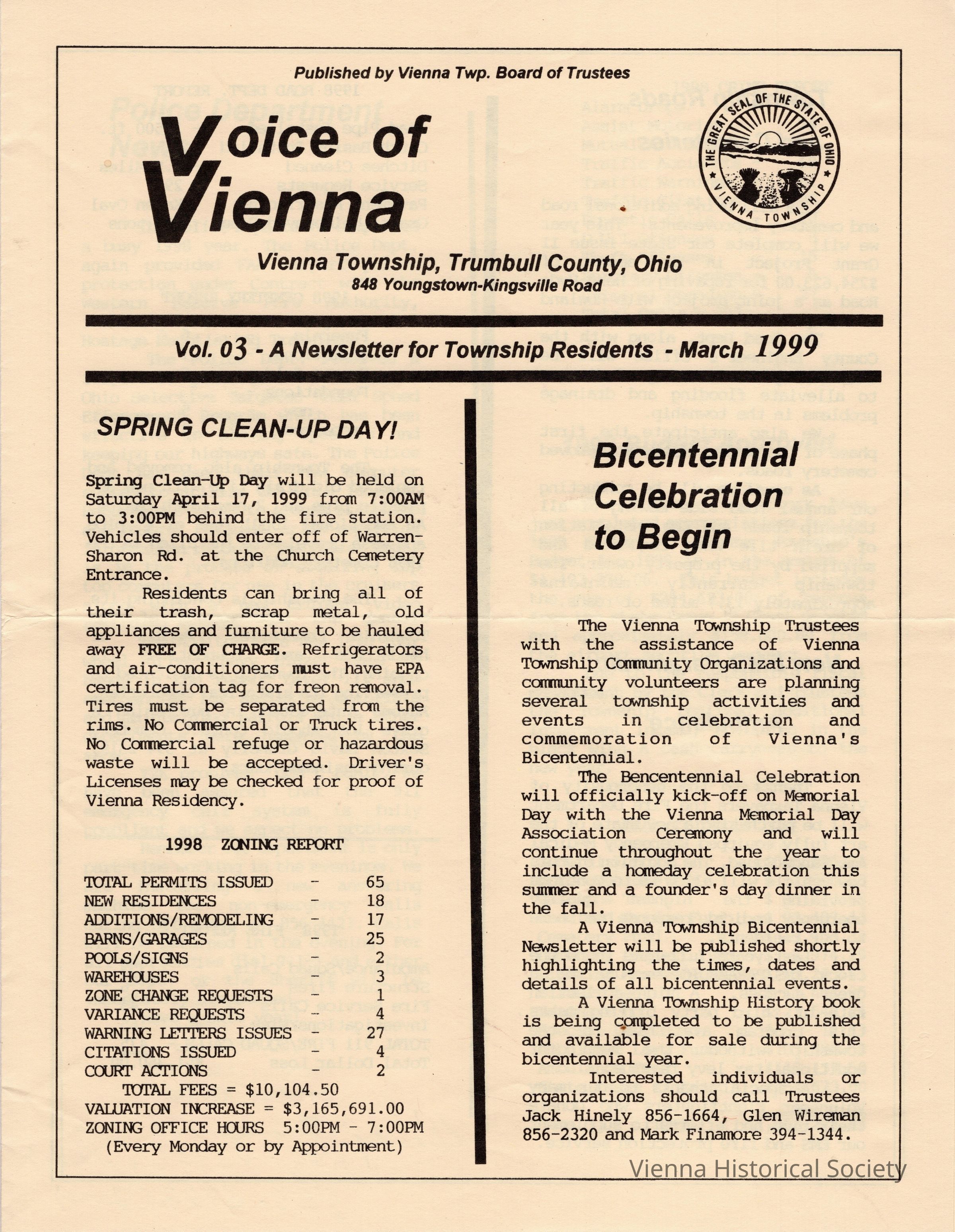 Voice of Vienna Newsletter, Volume 3, March 1999Collection