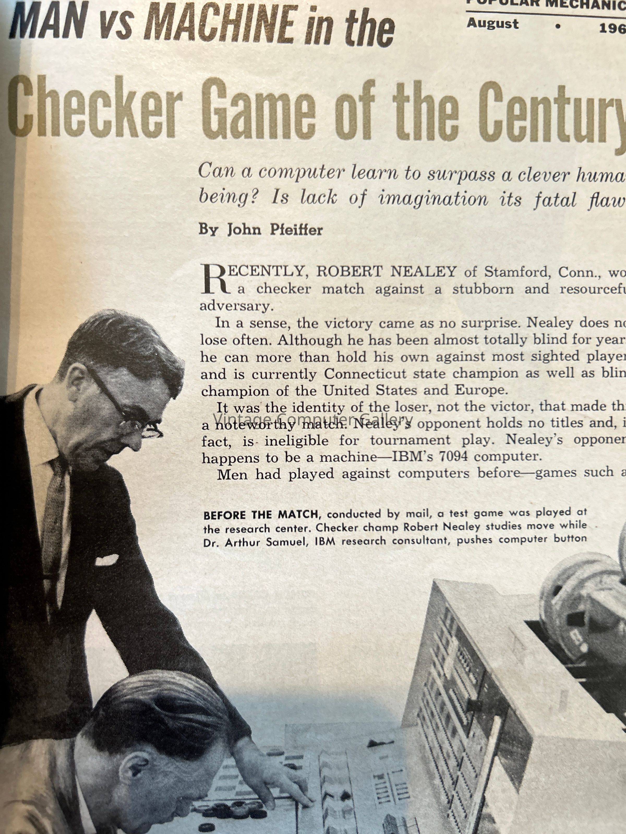 1964- August, Popular Mechanics, "Man vs. Machine in the Checker Game of the Century"Tags