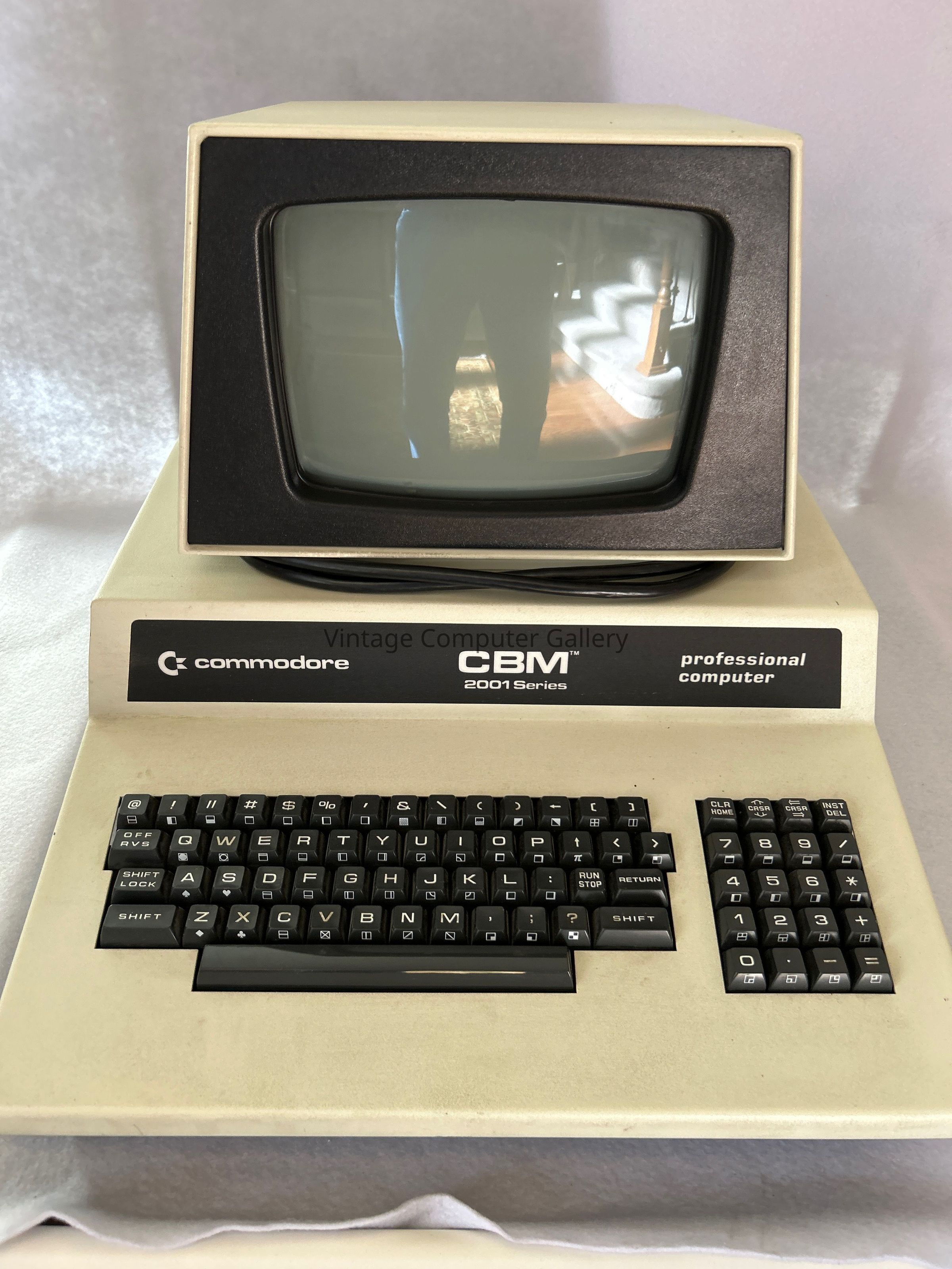 The original PET 2001 model shipped starting in October 1977 (initially to developers and media), with general availability by December. Early variants included the 2001-4 (4 KB RAM) and 2001-8 (8 KB RAM), priced around $495–$795. These featured a compact "chiclet" keyboard, a built-in cassette deck for data storage, and a 9-inch monochrome monitor with white phosphor. However, the chiclet keyboard drew criticism for its small size and poor ergonomics.