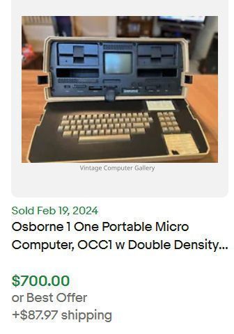 1981- The Osborne 1 is one of the first portable computers but needs external power source. Its name comes from Adam Osborne, the man who made this computer a reality (not quite true, see end of the text). It has a very small built-in screen (8.75 x 6.6 cm, which can display 128 columns!!) and weighs more than 10 Kg.The first models couldn't display more than 52 columns by line, so to access to the 76 other columns, the user had to scroll among the screen thanks to the cursor keys. It works under CP/M and was sold with Digital Research CBASIC (compiled BASIC), SuperCalc (spreadsheet), WordStar (word processor), MailMerge (mailing) and Microsoft's MBasic (MBasic source code was 100% upwards compatible with IBM PC's BASICA, source code only). This machine would be succeeded in 1983 by the Osborne Executive, which featured a larger screen (YAHOO!) and lower-profile disk drives. Despite its interesting characteristics, Osborne Computer Corporation suffered the competition of the first IBM PC compatibles and went bankrupt in 1983. One casualty was a planned portable computer called the Osborne PC (which, interestingly, was an MS-DOS clone). It was never released (even though prototypes exist).Acquisition