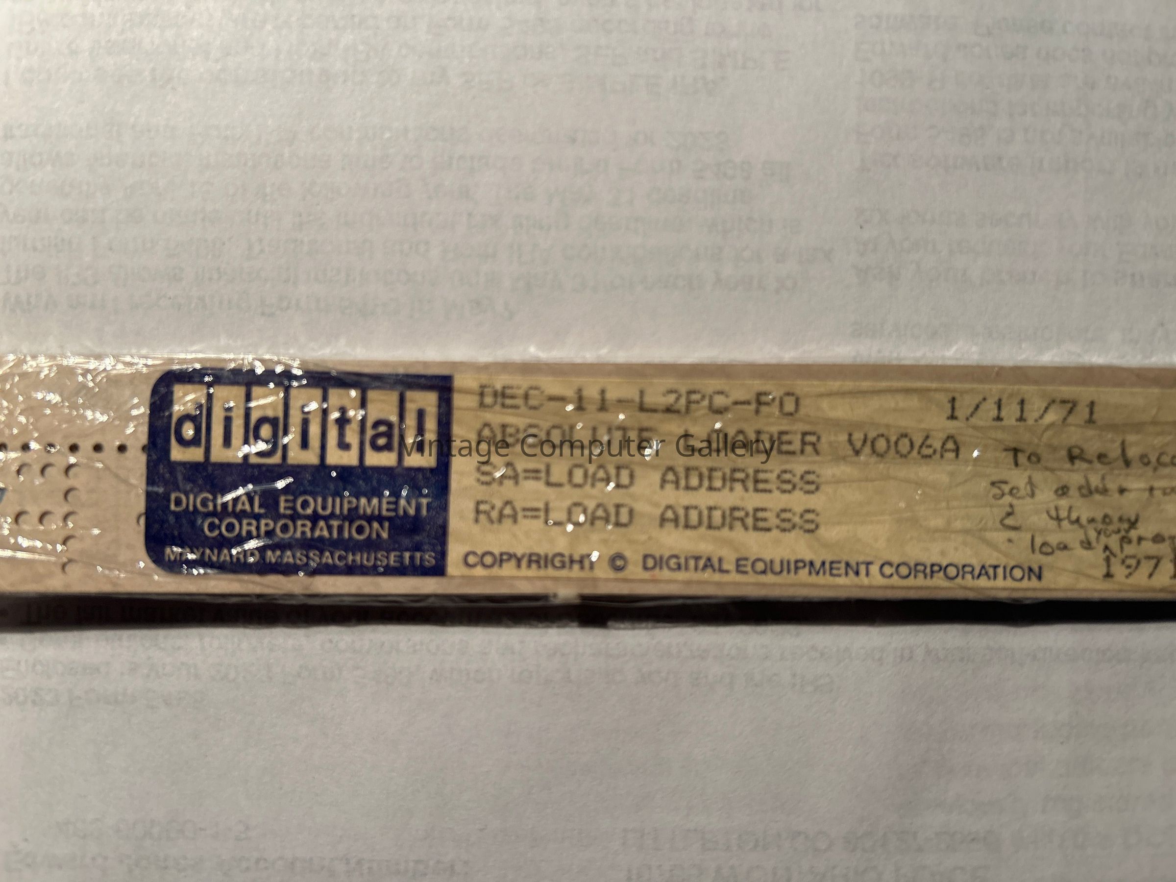1971- "Absolute Loader" on Paper Tape for DEC PDP-11 **Description