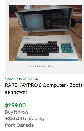 1982- Despite its name, the Kaypro II was the first Kaypro model. The name was KAYPRO II, because the Apple II was the most popular system (besides the IBM PC) around back then, and Kaypro decided to follow in the image. It was conceived by Non Linear Systems inc., a company with over 30 years' experience of producing small portable aerospace electronic equipment, which would later become Kaypro. The Kaypro systems were known to be square-built ! All the hardware is packed into a solid aluminum case. These computers can resist to a lot of trouble as they proved when ten of them (Kaypro IV & 10) were used by doctors for the Paris-Dakar 84's edition. Non of them failed despite extreme conditions. One asset of the Kaypro, over the Osborn 1 which was available at about the same time, is the 9" built-in monitor, easily twice the size of the Osbor’s. Though the Kaypro 2 has no graphic features, it can display 80 x 24 characters. There are two single-sided / double-density full-heigth 5.25'' disk-drives (190k each). One can be used to boot CP/M and the other to run the software. The Kaypro II is a real "luggable" system. Even if it weights more than 10kg, it can be easily moved with the handle found at the back.Acquisition