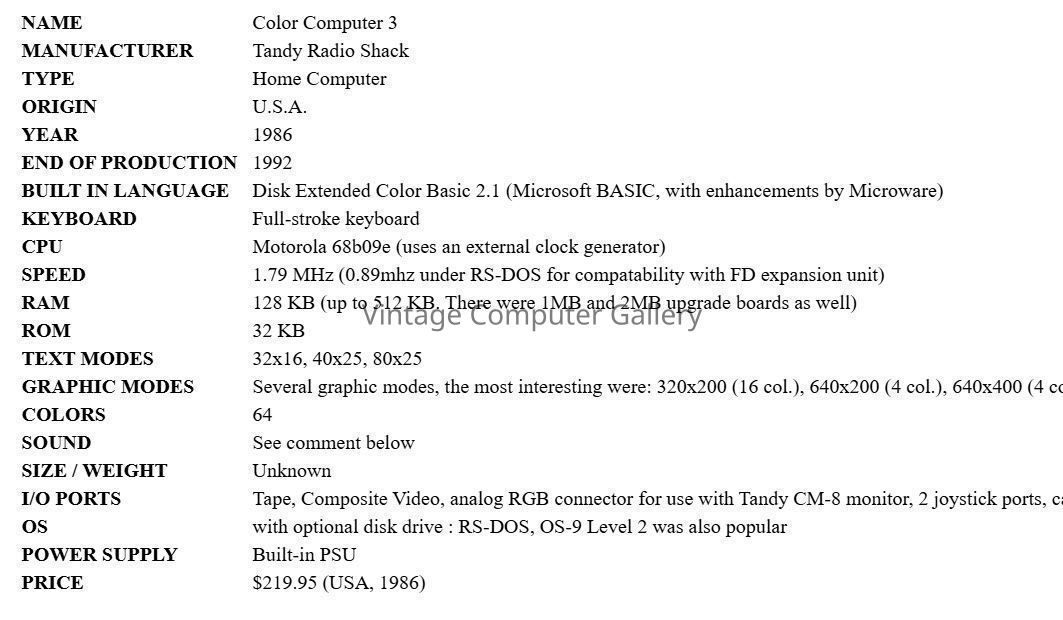 Tandy made several prototypes of a Color Computer model IV but it was never released.Acquisition