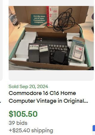 1984- The Commodore 16 belongs to the Commodore 264 series (with the Commodore C116 and Plus/4). It was designed to replace the Commodore VIC 20, but it was not compatible with the VIC-20, nor with the C64. It had the same characteristics as the Commodore Plus/4 : same graphic resolution, same sound system, same CPU and speed, just less memory. It featured a version of the original 6502 CPU named 7501, and a new video chip named TED. With 16 colours, and 16 shades of colour, it had an amazing 128 colours available. But it had no hardware sprites like the ones on the VIC II chip, so animated games and collision detection were very hard to do. It featured a powerful basic language (contrary to the VIC-20 or the C64) which makes graphics and sounds easy to program. The C16, like the Commodore Plus/4 was a commercial failure and had little success.Acquisition