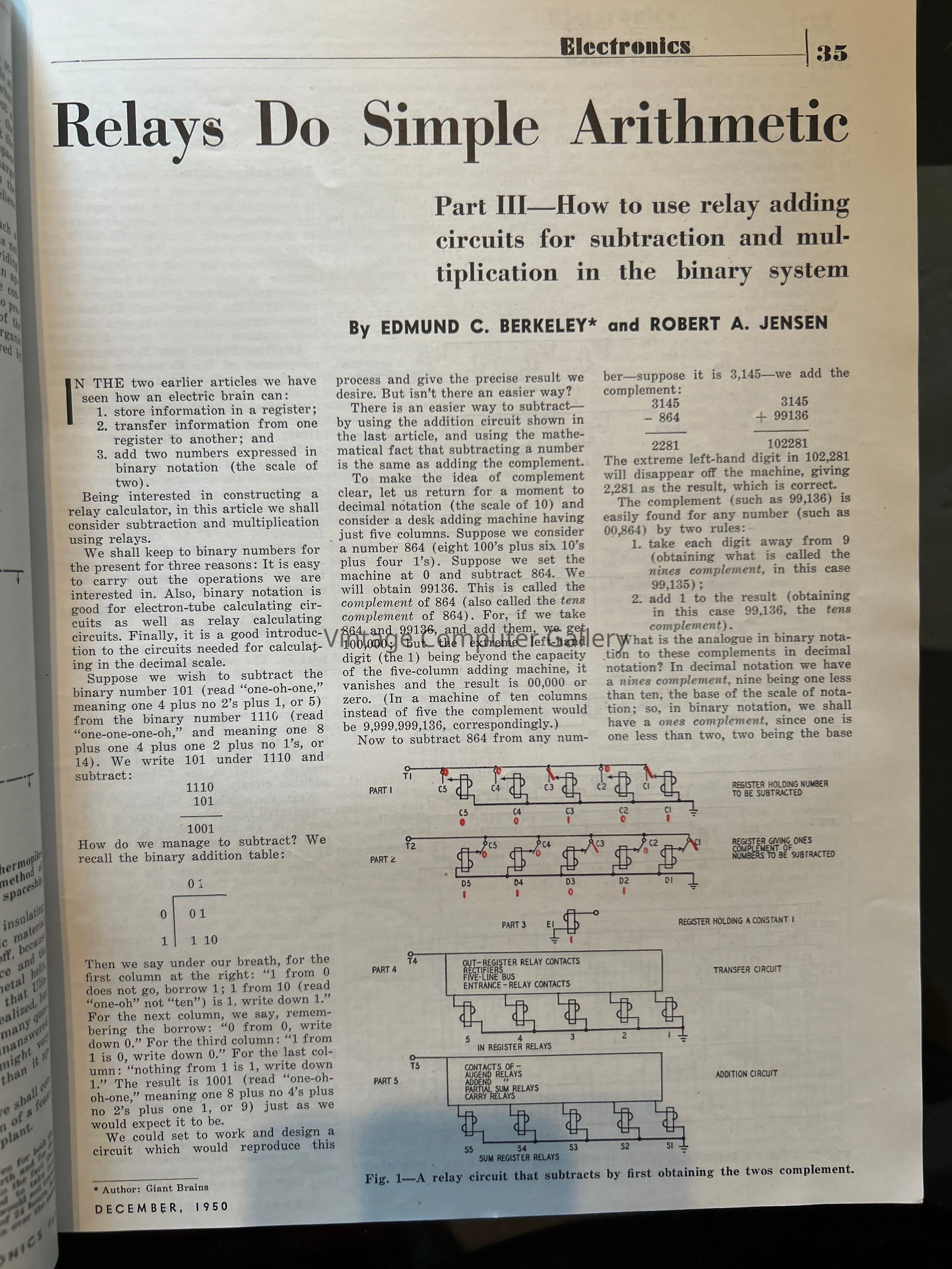 1950/12- Radio-Electronics, "Relays Do Simple Arithmetic Part III" by Edmund BerkeleyTags