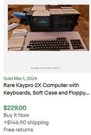1984- The Kaypro 2x was one of the last models Kaypro produced. Size and appearence were the same as the first Kaypro II, but Internal hardware was inspired by the Kaypro 10. It came with a 4 MHz Z80A processor, dual slimline 400 KB floppy drives, a built-in 300 baud modem, two serial ports and a full set of Micropro software (WordStar, CalcStar, DataStar) It is said that Arthur C. Clarke worked in the movie version of "2010: Odyssey Two", a sequel of "2001", using a Kaypro 2x and its built-in modem for transferring texts from Sri Lanka, where he lived, to Los Angeles.Acquisition