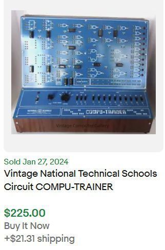 The National Technical Schools Compu Trainer Kits were educational resources designed to teach electronics and circuitry. These kits were produced by the National Technical Schools and provided hands-on learning experiences for students interested in electronics and technology.