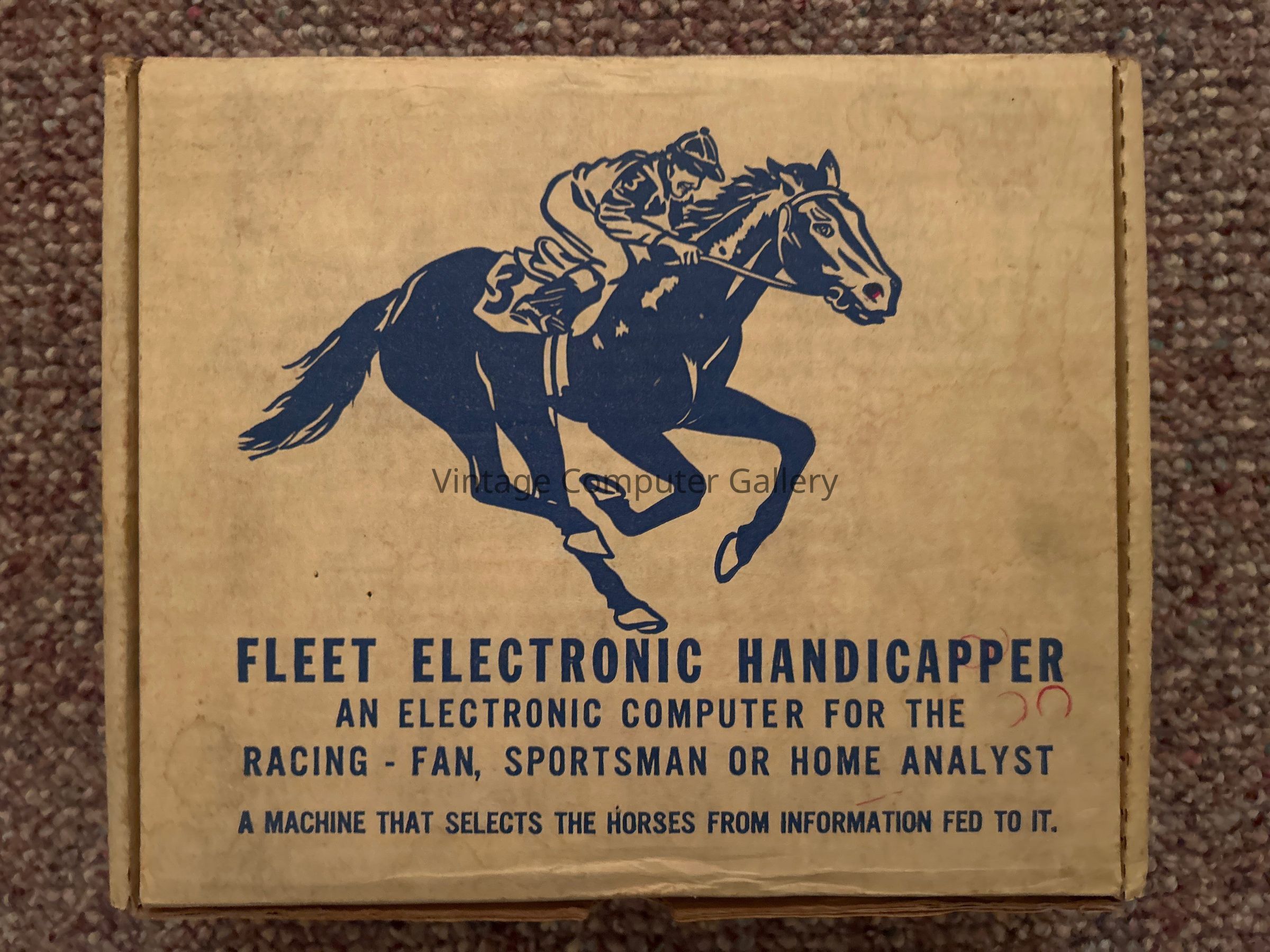 The Fleet Electronic Handicapper, which was a device used to analyze horse races. It seems to be a machine that selected horses based on information fed into it, potentially used for betting or predicting outcomes in horse racing