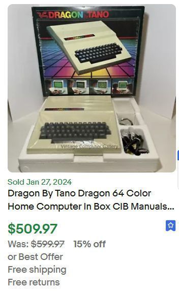 The Dragon 64 was sold in various European countries. A slightly modified version was also manufactured and sold in the US by TANO (Technical Associates of New Orleans) from August 1983. They sold the machine under the TANO name for a few months but couldn't compete with the agressive price policy from Commodore, Atari and T.I. All the unsold machine were eventually sold off to a discount store called California Digital.