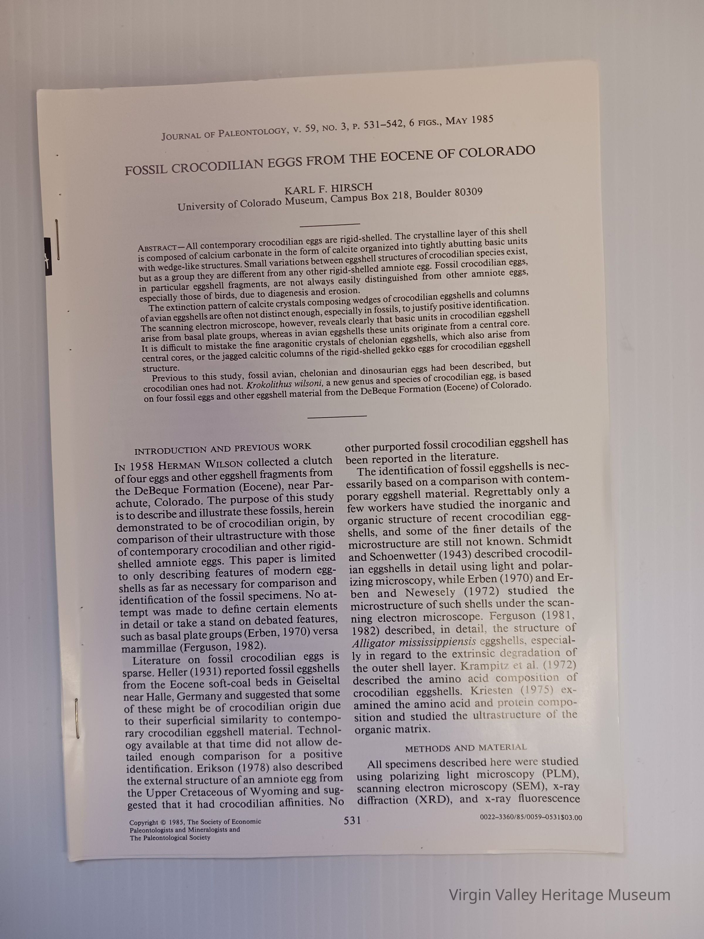 Fossil Crocodilian Eggs from the Eocene of Colorado