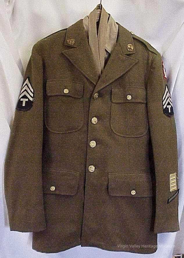 WW II - Army Uniform complete. Pants, shirt, Jacket, tie Tech Sgt. - Worn by Francis Hughes