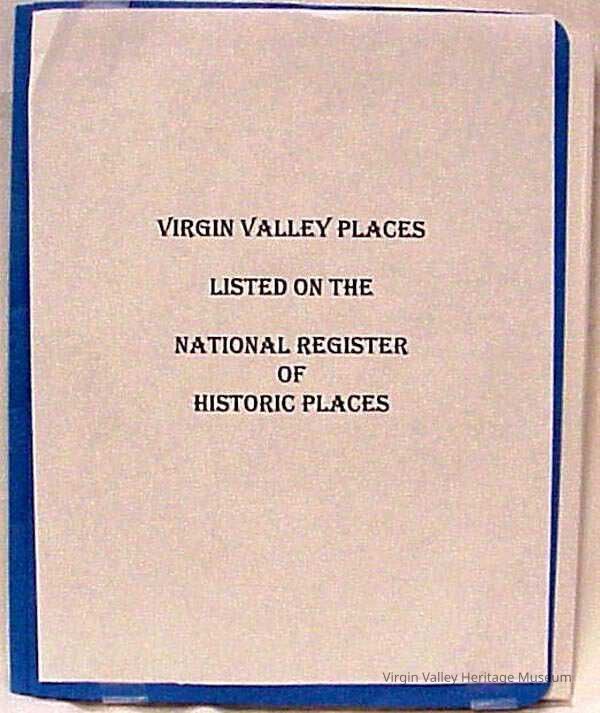 US Dept of Interior National Register of Historic Places in the Virgin Valley. List the historic places that are now in the National Register.