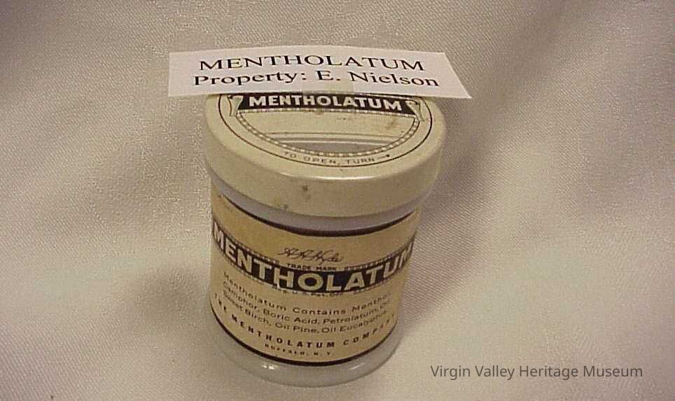 A vintage bottle of Mentholatum ointment, which was used to relieve muscle pain.
