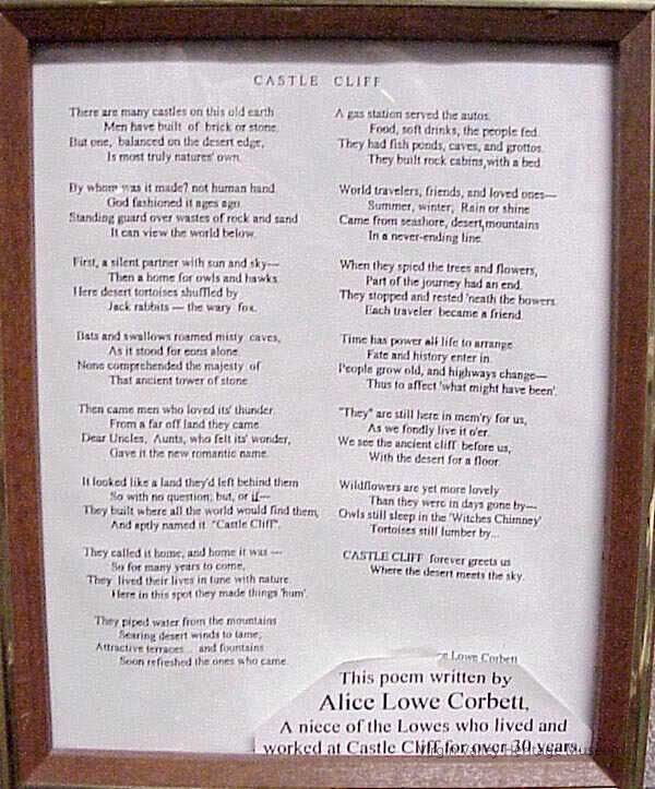 Castle Cliff Poem Written by Alice Lowe Corbett A Niece of the Lowe's that lived and worked at Castle Cliff for over 30 Years
