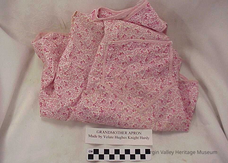 A "Grandmother Apron" made by Velate Hughes Knight Hardy, a life-long resident of Mesquite and one of Dudley Leavitt's grandchildren.