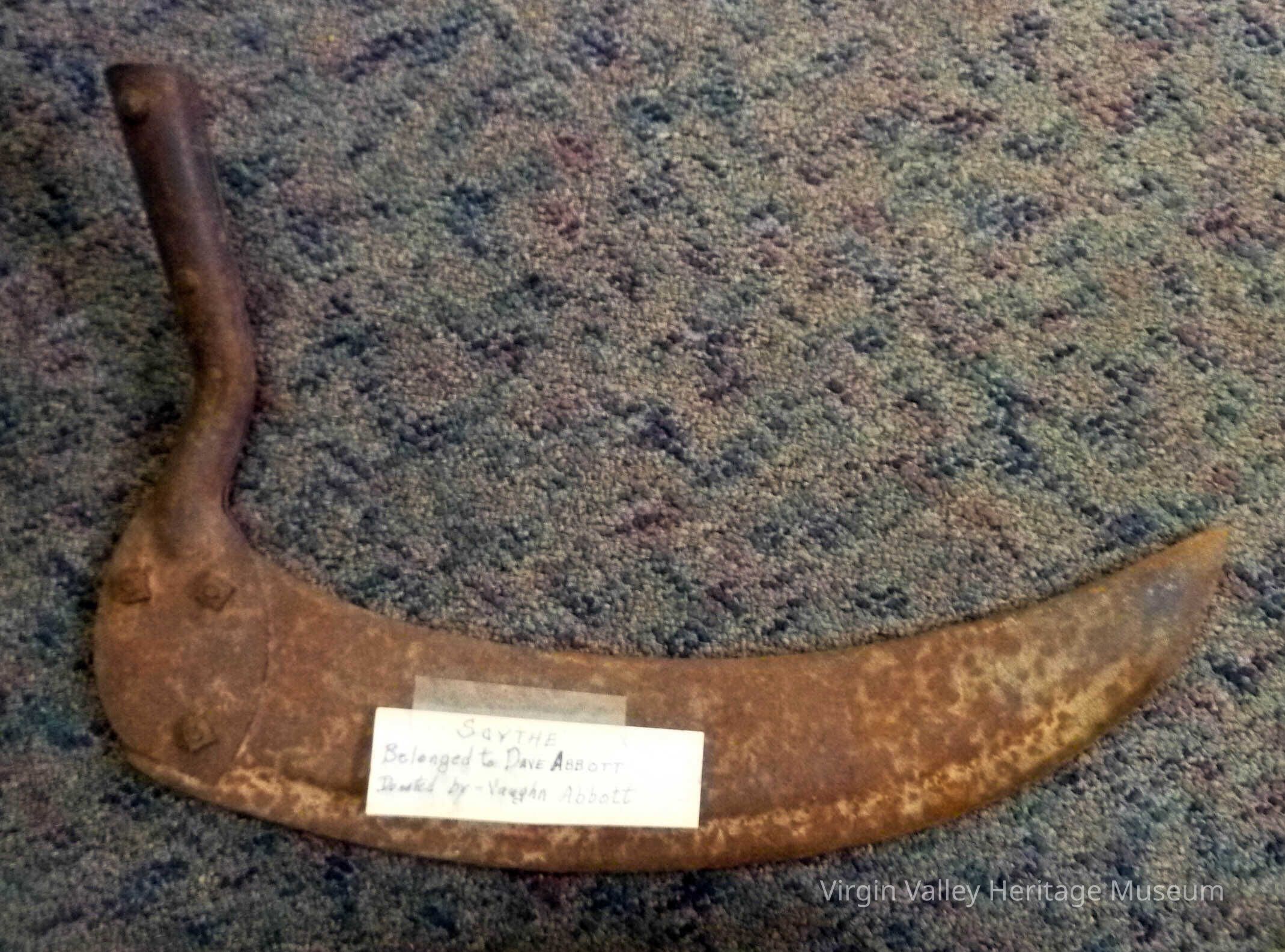 Scythe belonged to Dave Abbott Donated by Vaugh Abbott
